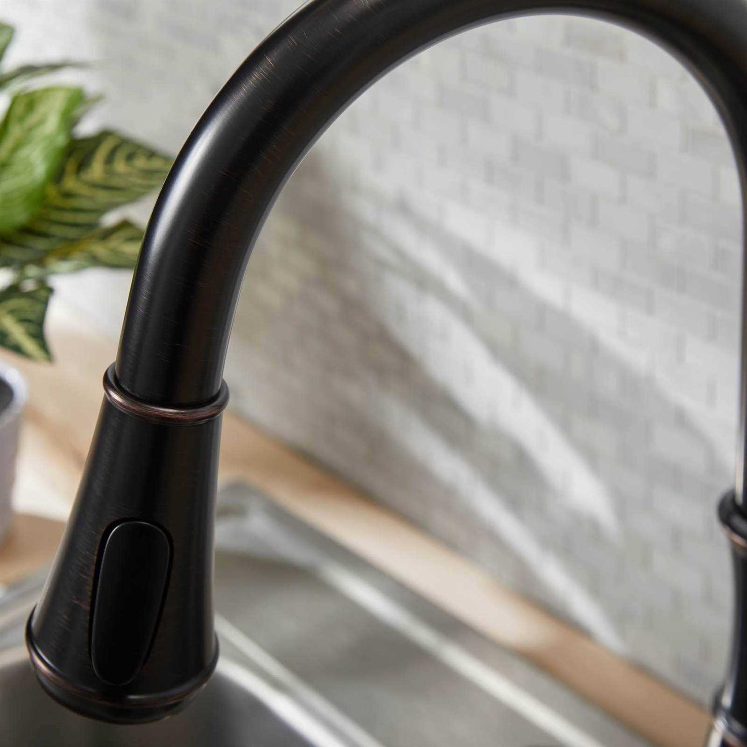 - Tuscan bronze finish kitchen faucet from the Wheaton collection
