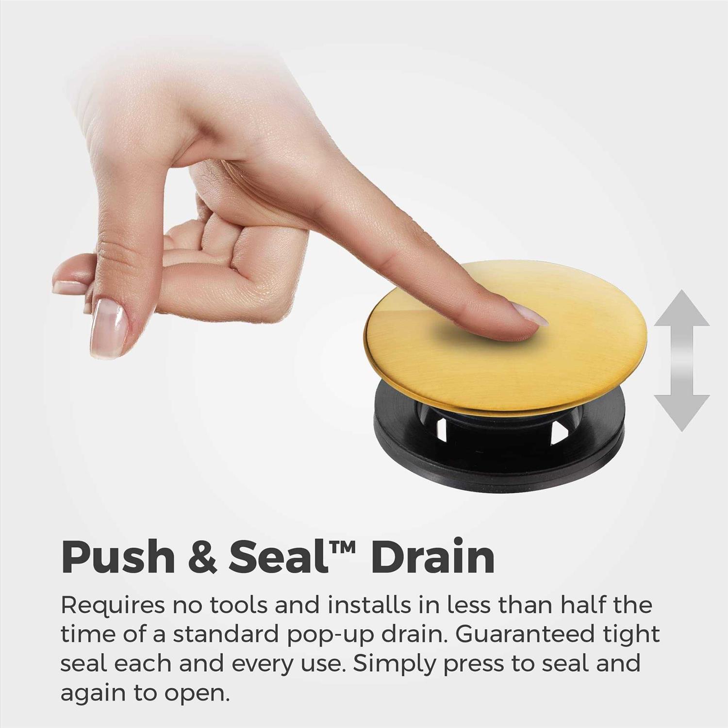 - “Push & Seal drain requires no tools and installs in less than half the time of a standard pop-up drain