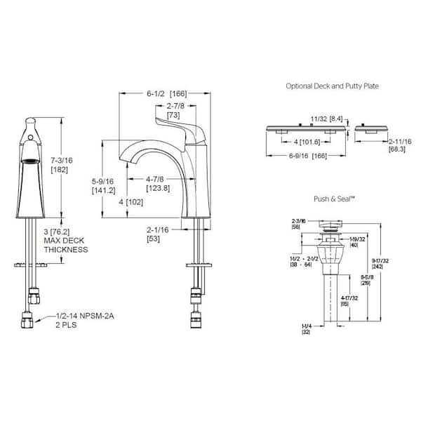- “Push & Seal drain requires no tools and installs in less than half the time of a standard pop-up drain