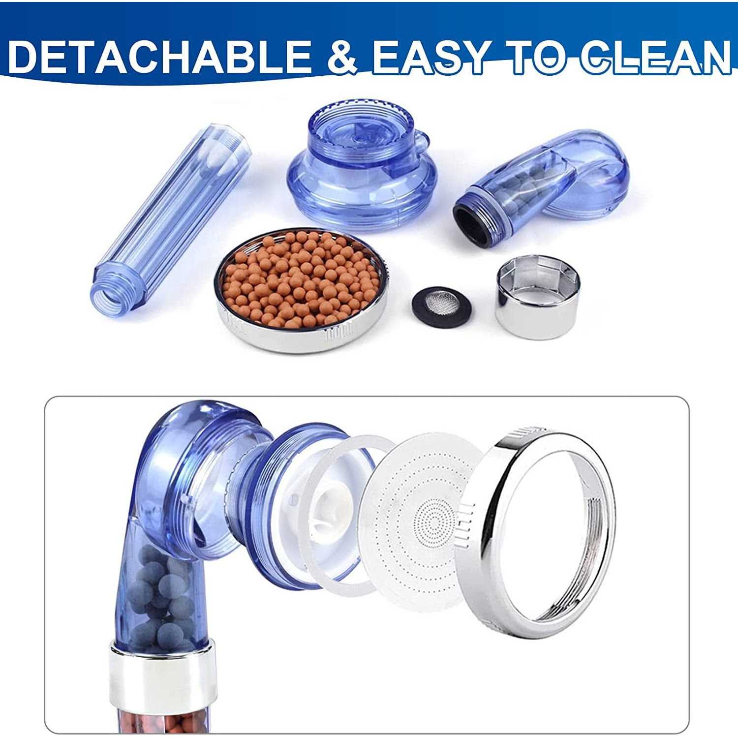 - The special filter beads used in this shower head can remove impurities in the water well.