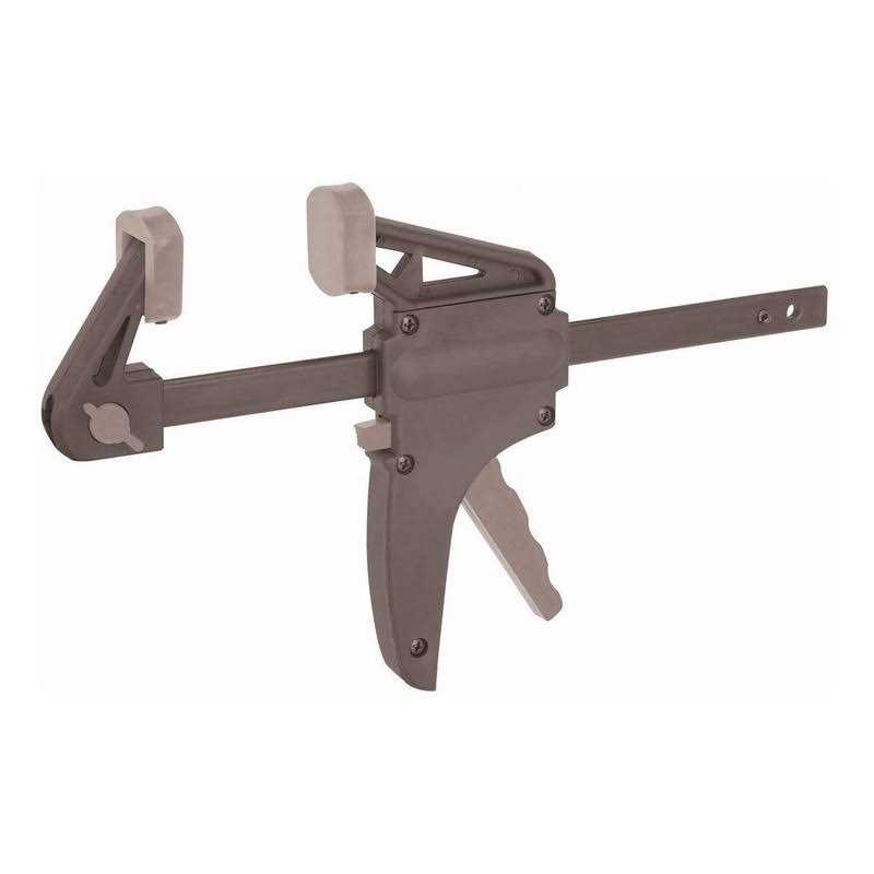 Durable nylon reinforced ratcheting clamp has soft jaws to protect your workpiece. This handy bar clamp pulls double duty by easily converting from a ratcheting bar clamp to a spreader in seconds with no tools required. Easy, single-handed operation and a quick release button for added convenience.