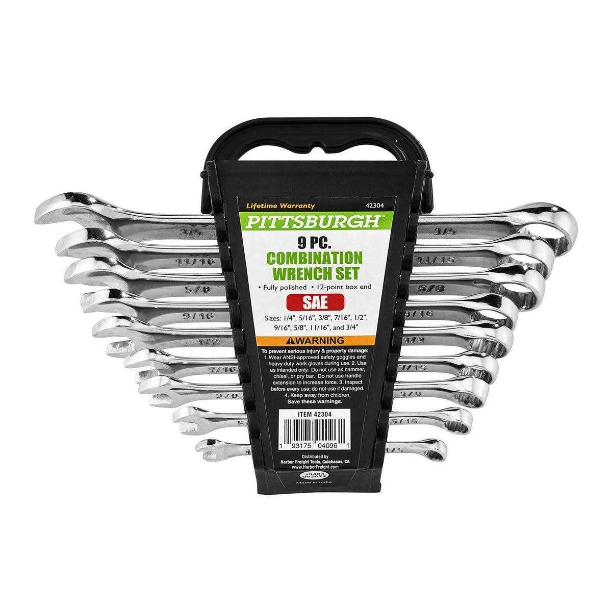 Pittsburgh 9 Pc Fully Polished SAE Combination Wrench Set