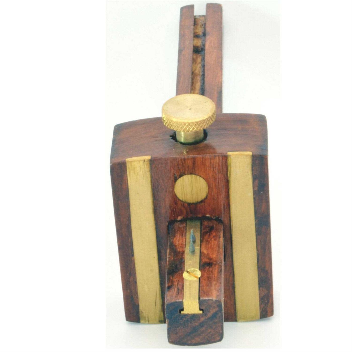 Description: Specialized combination tool works as a mortise gauge or marking gauge This versatile combination mortise gauge features dual adjustable hardened pins for marking both edges of a mortise. On the reverse side, a single pin serves as a standard marking gauge. The combination mortise gauge is made of polished hardwood with brass contact points and locking thumbscrew. Get consistently accurate, parallel lines with this handy woodworking (and metalworking) tool. Dual adjustable hardened pins for marking both sides of a mortise Single pin on reverse side for use as a standard marking gauge Brass thumbscrew locking mechanism Constructed from polished hardwood with brass contact points to prevent wear Specification: Material Hardwood Measures Up to 6 in. Product Weight 0.60 lbs. Product Width 2-1/2 in.