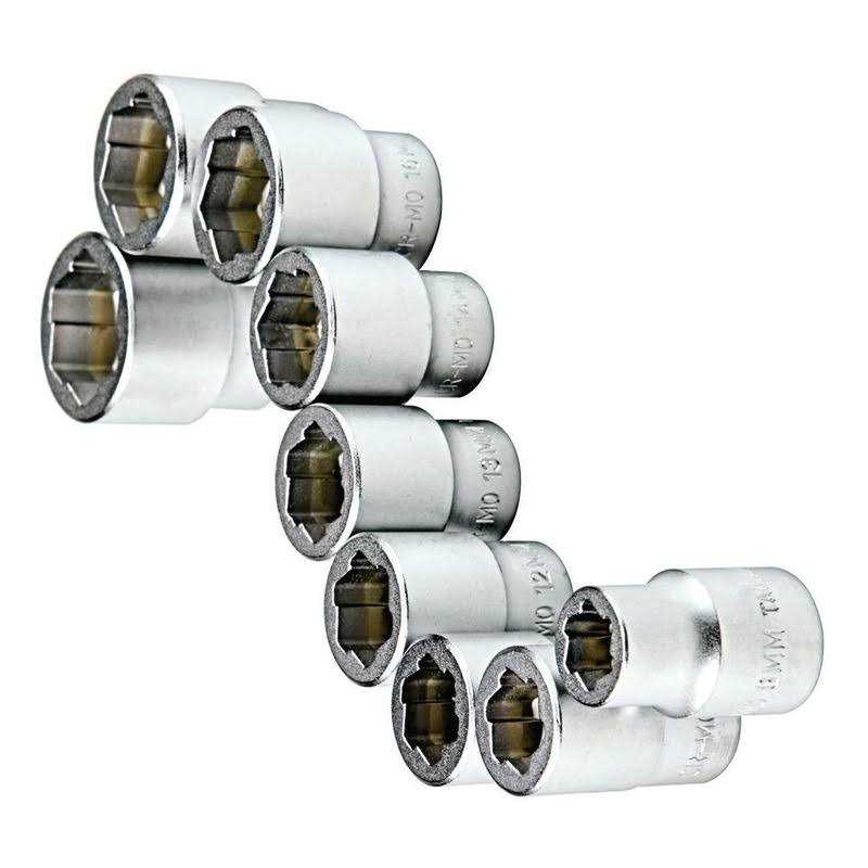 Remove stripped, rusted, and painted nuts and bolts with these Metric bolt extractor sockets. Bolt extractor sockets have a specialized internal design to grab and grip fasteners for quick, straightforward removal. Highly visible markings on the bolt extractor sockets for quick socket selection.