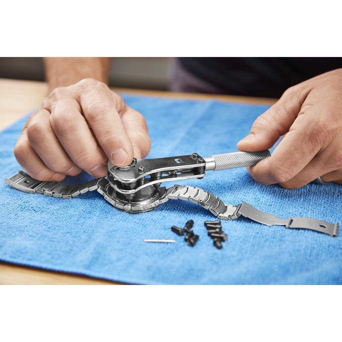 - Pin-style jaws easily adjust to open screw-on type watch cases