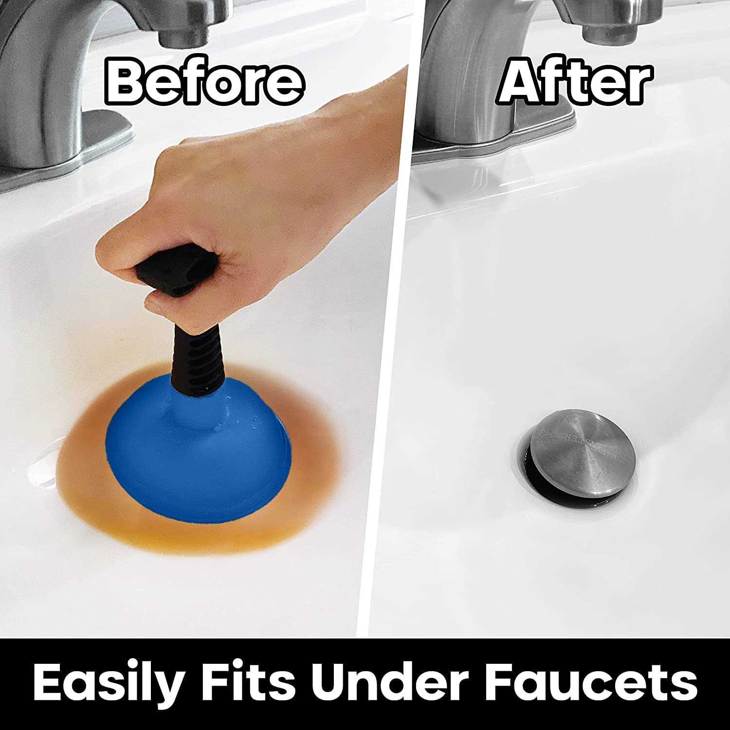 【MINI SINK PLUNGER】- Clear clogs instantly in your sink or other drains with this small plunger by Plungeroo. Simply press down to provide a strong push that removes any blockage in your sink, shower, or bathtub. 【POWERFUL DESIGN】-Crafted from durable plastic, this professional sink plunger features a large bellows and easy-to-use plunger design. The non-toxic materials are resistant to rust and corrosion for a long-lasting plunger tool. 【COMPACT SIZE】- Measuring 6.1 x 4.2 x 2.9-inches, fit this mini plunger under awkward faucets and in other tight spaces. Regular toilet plungers have long handles that make unclogging drains from tubs, sinks, and other drains uncomfortable, so use this one instead. The short handle helps to alleviate hand fatigue for those stubborn clogs that take an extra press of the plunger.