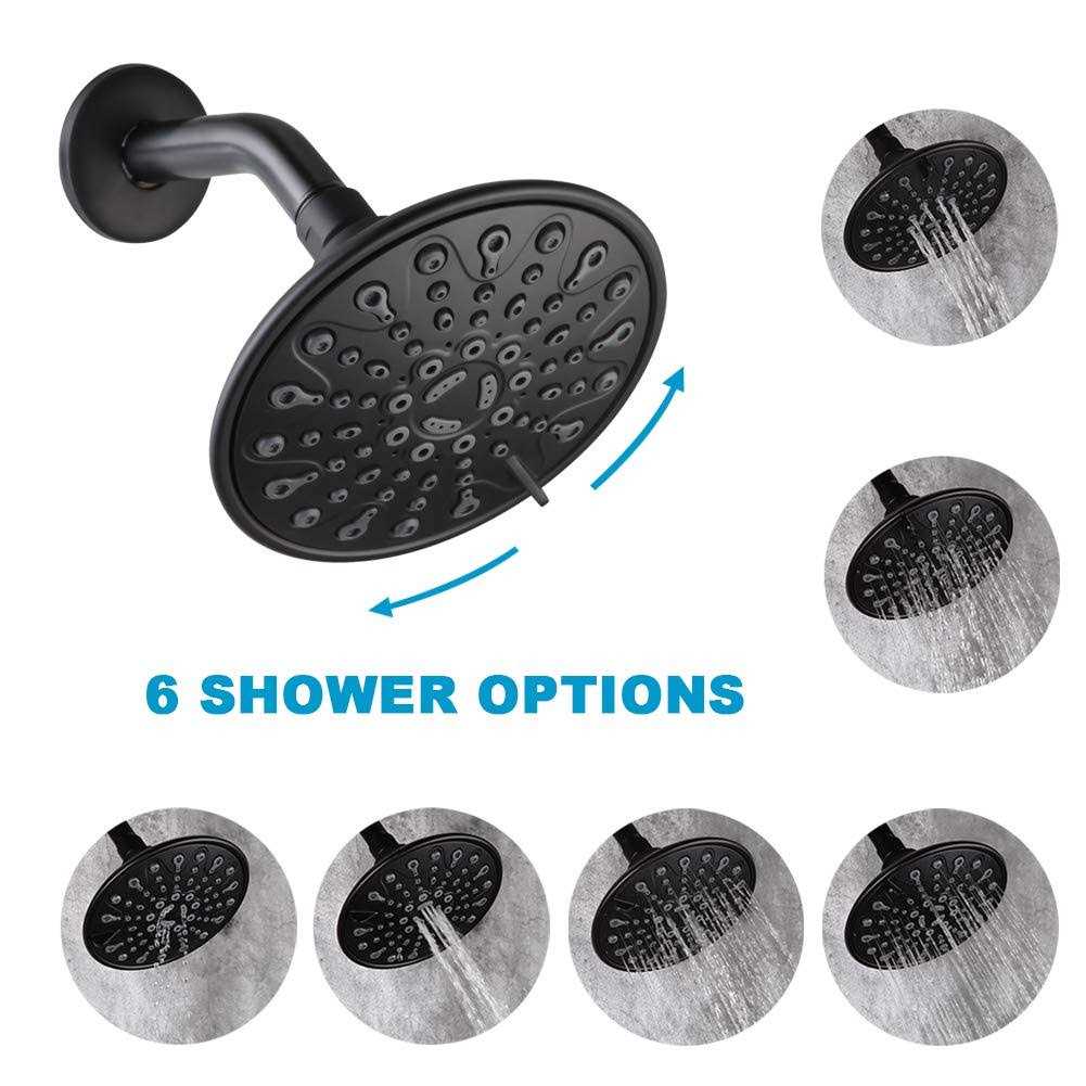 Features: Shower system has 6″ shower head offering a good coverage, including 6 different spray types, bring users a more comfortable and differently bathing experience. POP Shower trim kit includes shower valve, made of premium brass, has passed 500,000 tests and there is no bursting or leaking, strong and sturdy, ensuring long lifetime. Universal thread Tpye: 1/2″ NPT thread shower arm, USA standard, meets most Bathrooms. Need to unscrew the water outlet nut under the valve body to connect the bathtub faucet.California CEC list (1.8GPM 6.8L/MIN) Matte black shower faucet in multi-layer Matte Black finished, this shower set can resist daily scratches, corrosion and tarnishing in humid bathroom.