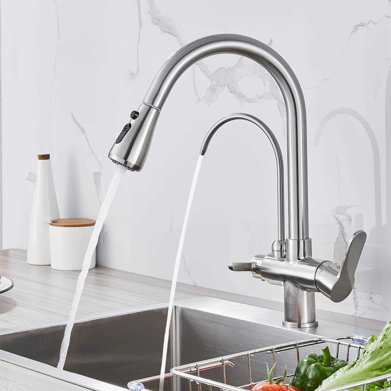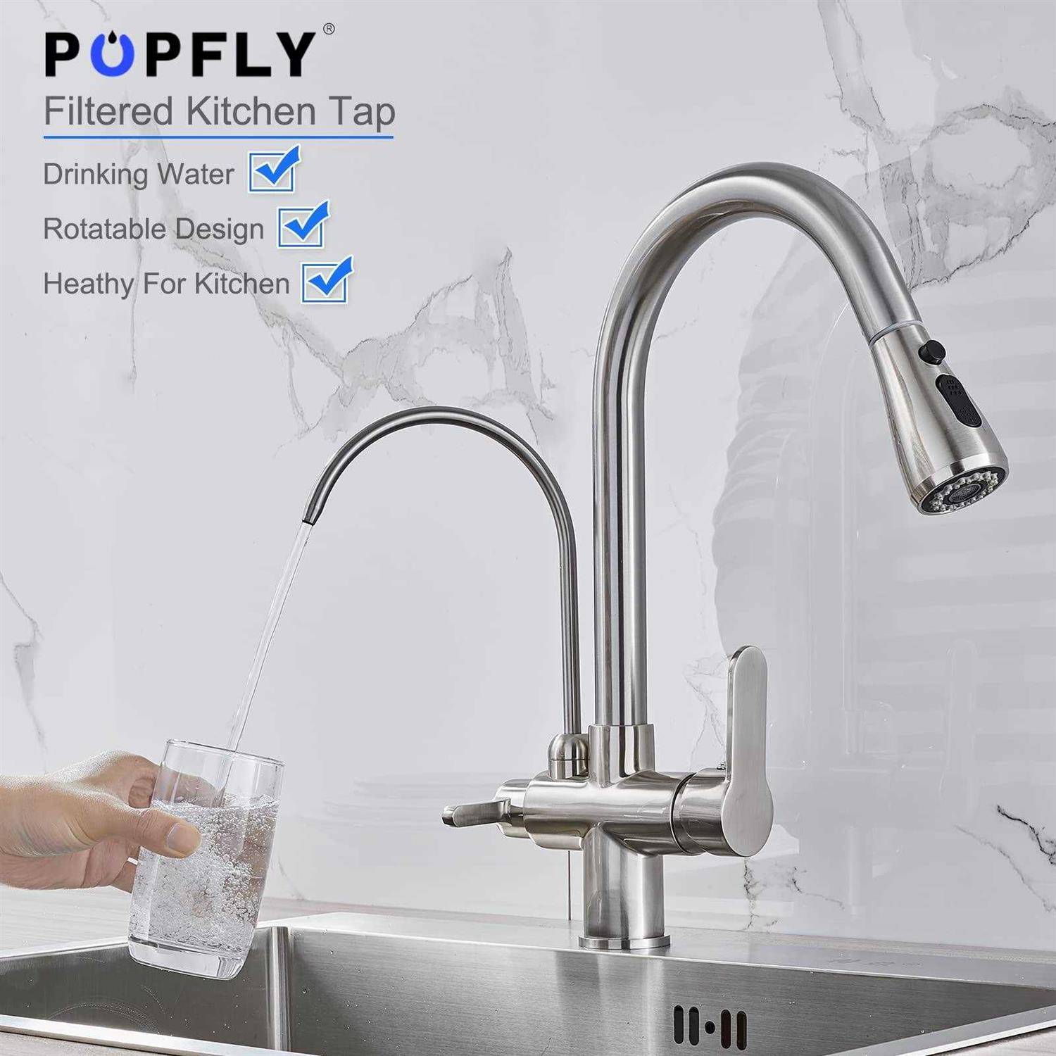 POPFLY Water Purifier Kitchen Pull Down Faucet Stainless Steel Brushed Nickel