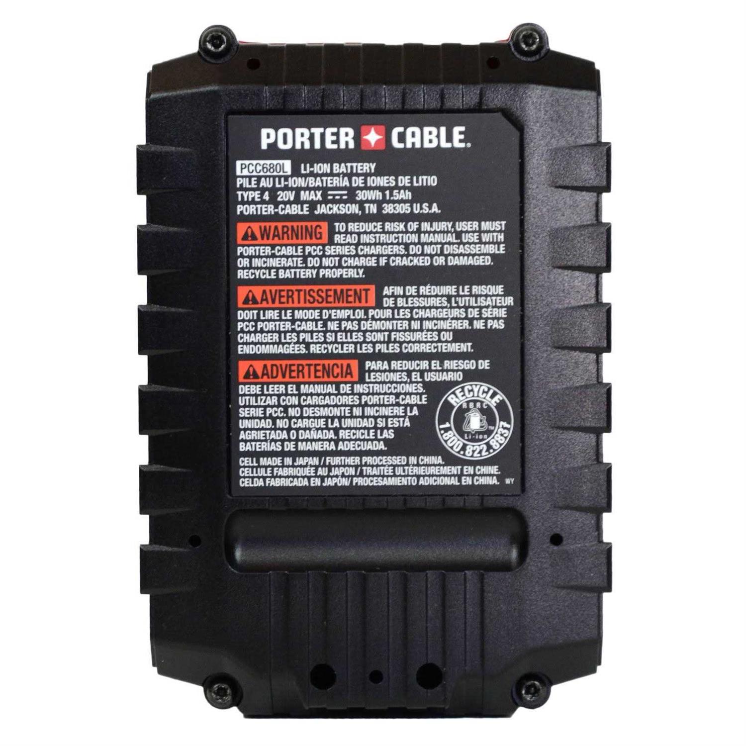 This powerful battery can operate a variety of Porter Cable 20V tools and give you the flexibility to get the job done quickly and efficiently. This innovative and powerful battery features thermal protection that protects against overheating after prolonged use. This battery provides 1.5 amp hours of power for additional runtime, and its design can help improve your tools performance. With no memory and negligible self-discharge, this battery is ready whenever you are. Featuring high energy flow cells and weighing just 9.6 ounces, the Porter Cable PCC680L 20-Volt 1.5ah Lithium Tool Battery may be the perfect choice for you if you have a number of Porter Cable 20-Volt tools.