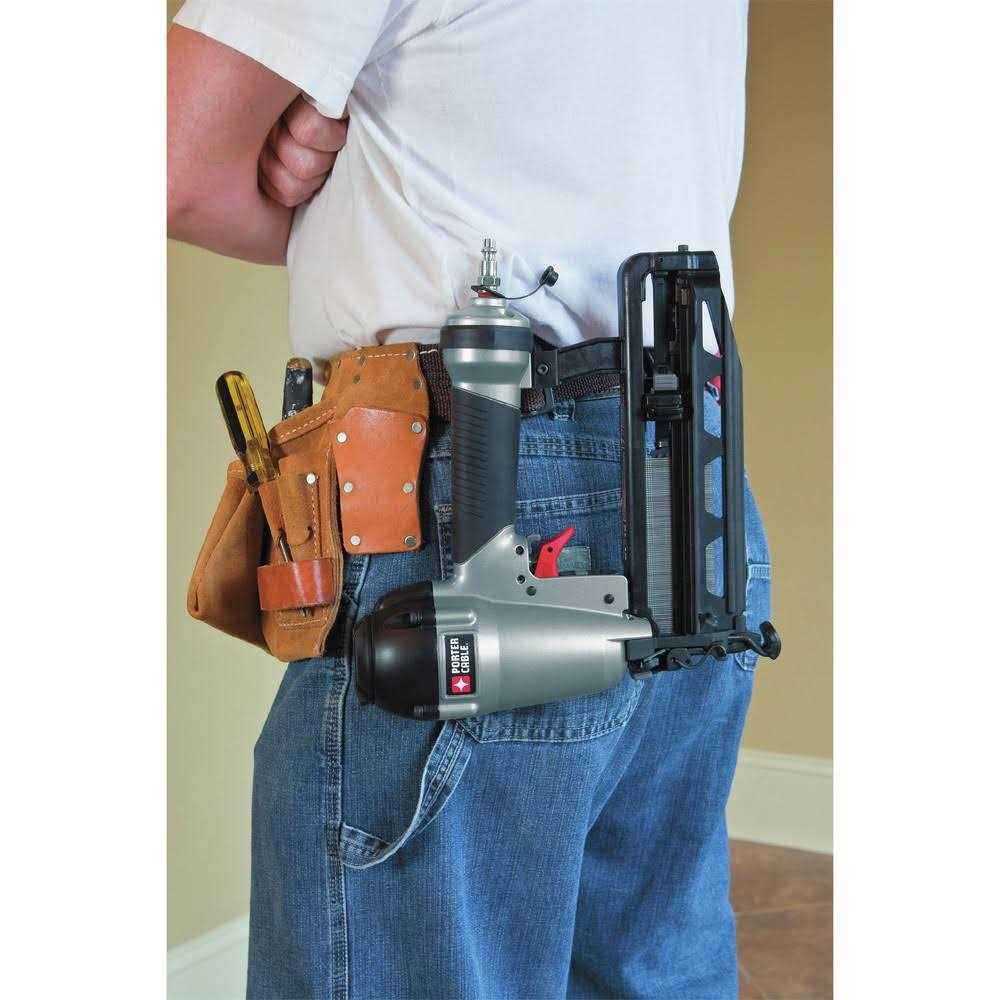 Install Trims with Ease with the Porter Cable 16-Gauge 2.5″ Nailer Kit Power through tedious finish applications with the Porter-Cable straight finish nailer kit. This 16-gauge nailer kit with maintenance-free motor and internal piston catch will last you for a long time while ensuring steady power flow. Adjustable depth drive helps you clear jams without the need for additional tools. Furthermore,this nailer has an adjustable exhaust port for a clean work surface and to keep direct particulates away from the user.