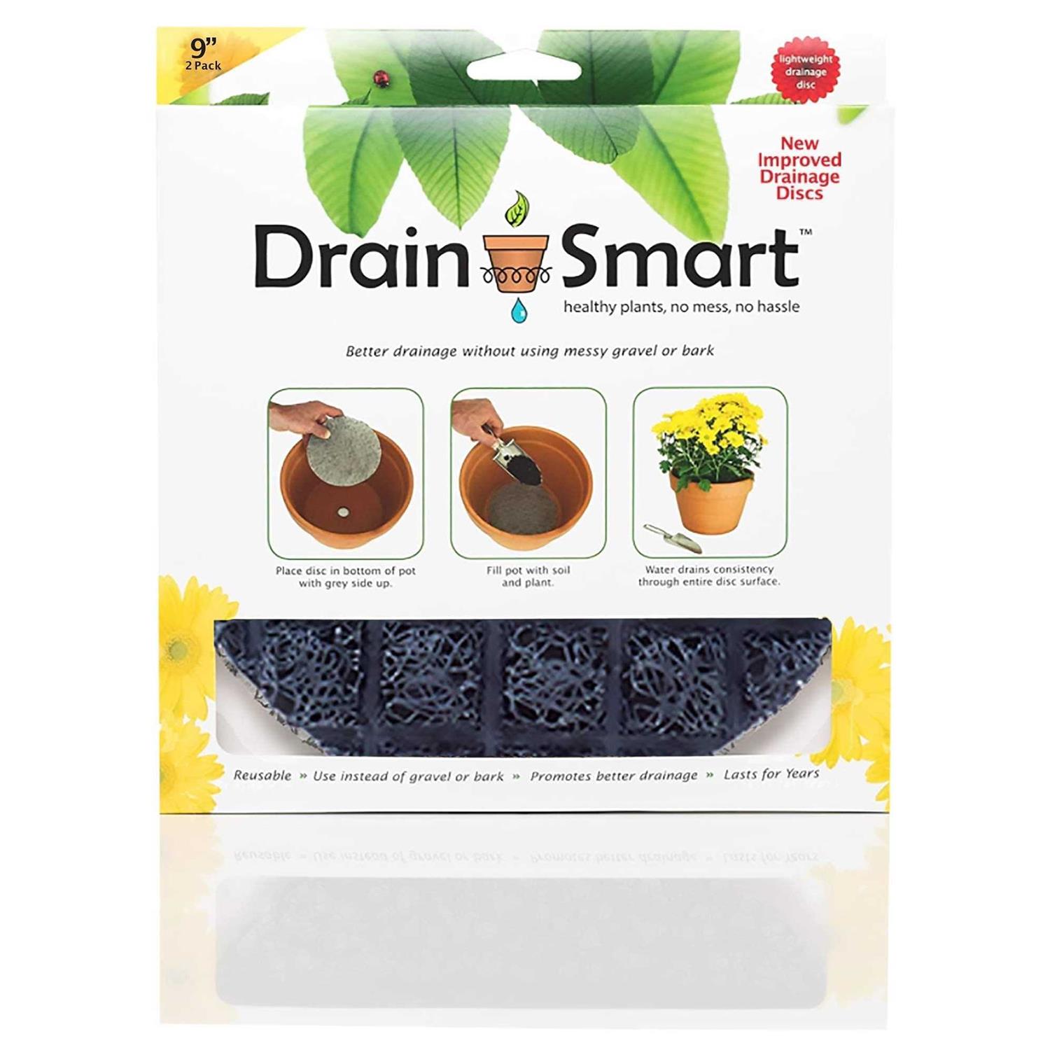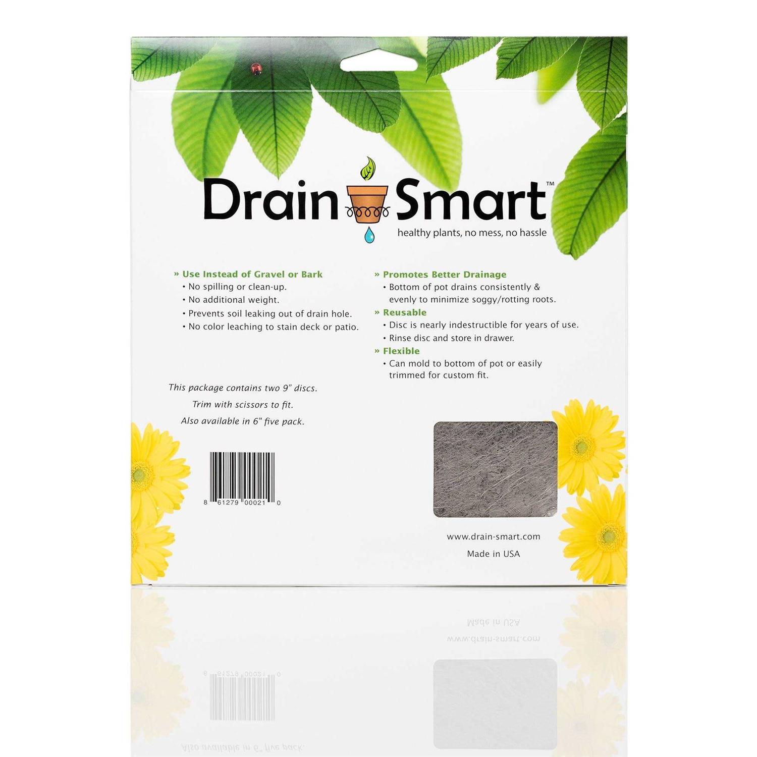 BETTER THAN GRAVEL: Drain Smart container-drainer discs are the cleaner, lightweight way to drain potted plants. No more messy bark, gravel, or packing peanuts. Perfect for houseplants and urban gardens. LIGHTWEIGHT 3D MESH: Updated discs keeps expensive potting soil where it belongs, in the pots. Drain Smart discs minimize soil from migrating out of the pot drain hole keeping your deck, house, or table clean. EASY & CLEAN: No need for messy and bulky gravel, bark, or packing peanuts plus Drain Smart discs are reusable year after year. Keep your soil in the pot, not on your patio. FAST: Simply trim the pots insert the disc to size and place in your pot then fill with soil and plant that’s it! So much easier than rocks for flower pots. HEALTHY PLANTS: Use our discs to promote healthier, more robust plants as Drain Smart’s proprietary technology helps to prevent root rot through improved drainage for potted plants. Drain Smart 3D mesh container-drainer discs are an excellent choice for uniform drainage and quick and easy installation. The 6-inch discs diameter discs are perfect for small to medium pots or containers.