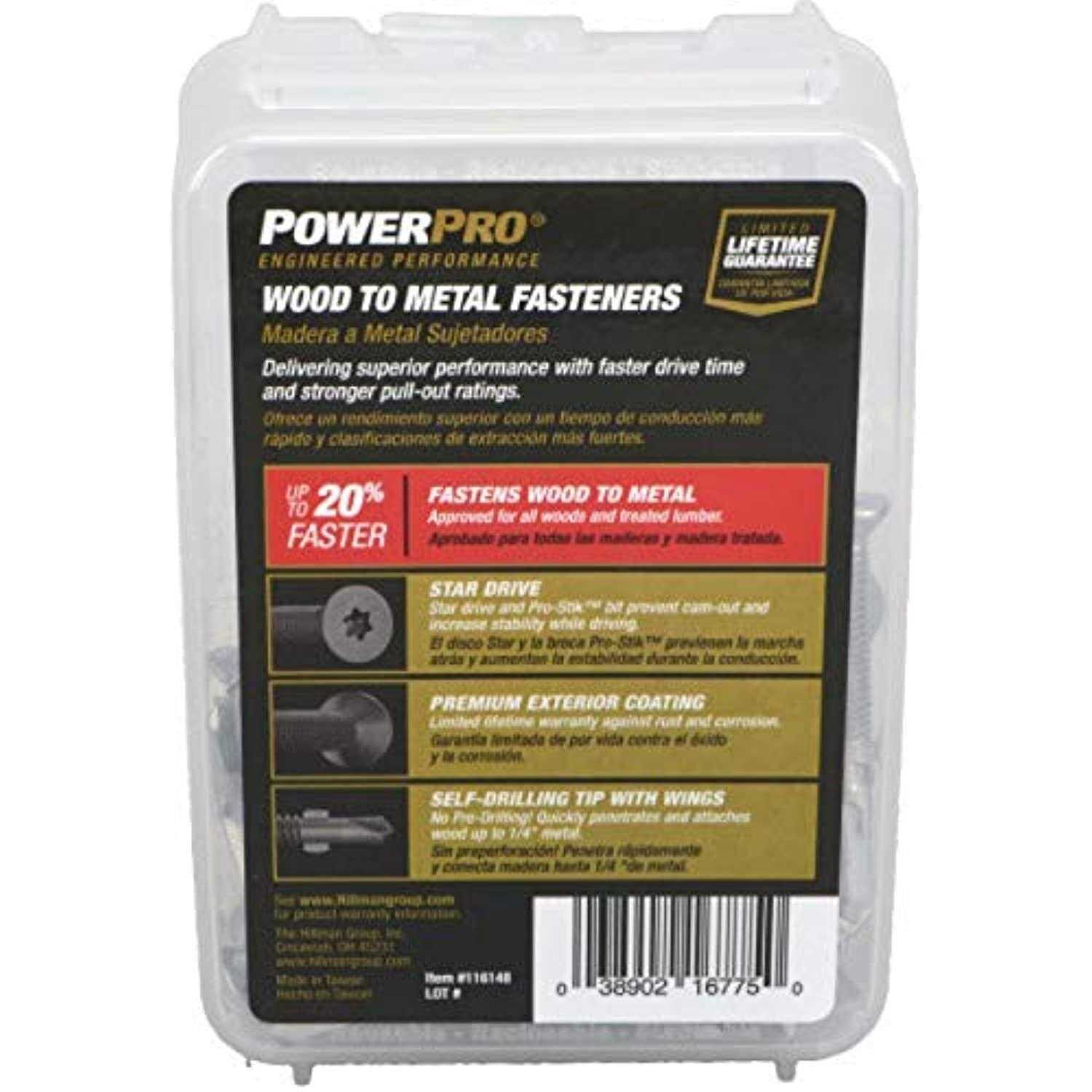 Power Pro premium flat-head self-drilling sheet metal screws are a powerful tool to have in your arsenal when performing wood-to-metal fastening. They deliver superior performance with a faster drive time and stronger pull-out rating. They feature a star drive, premium exterior coating, and self-drilling, winged tip. The star drive prevents cam-out and offers increased stability while driving. The self-drilling tip with wings quickly penetrates and attaches wood to metal up to 1/4-in thick. Great for general household repairs, renovations, improvements, and DIY projects, the sharp threads of these screws draw materials together and ensure a secure hold. These screws are approved for use with all woods and treated lumber.