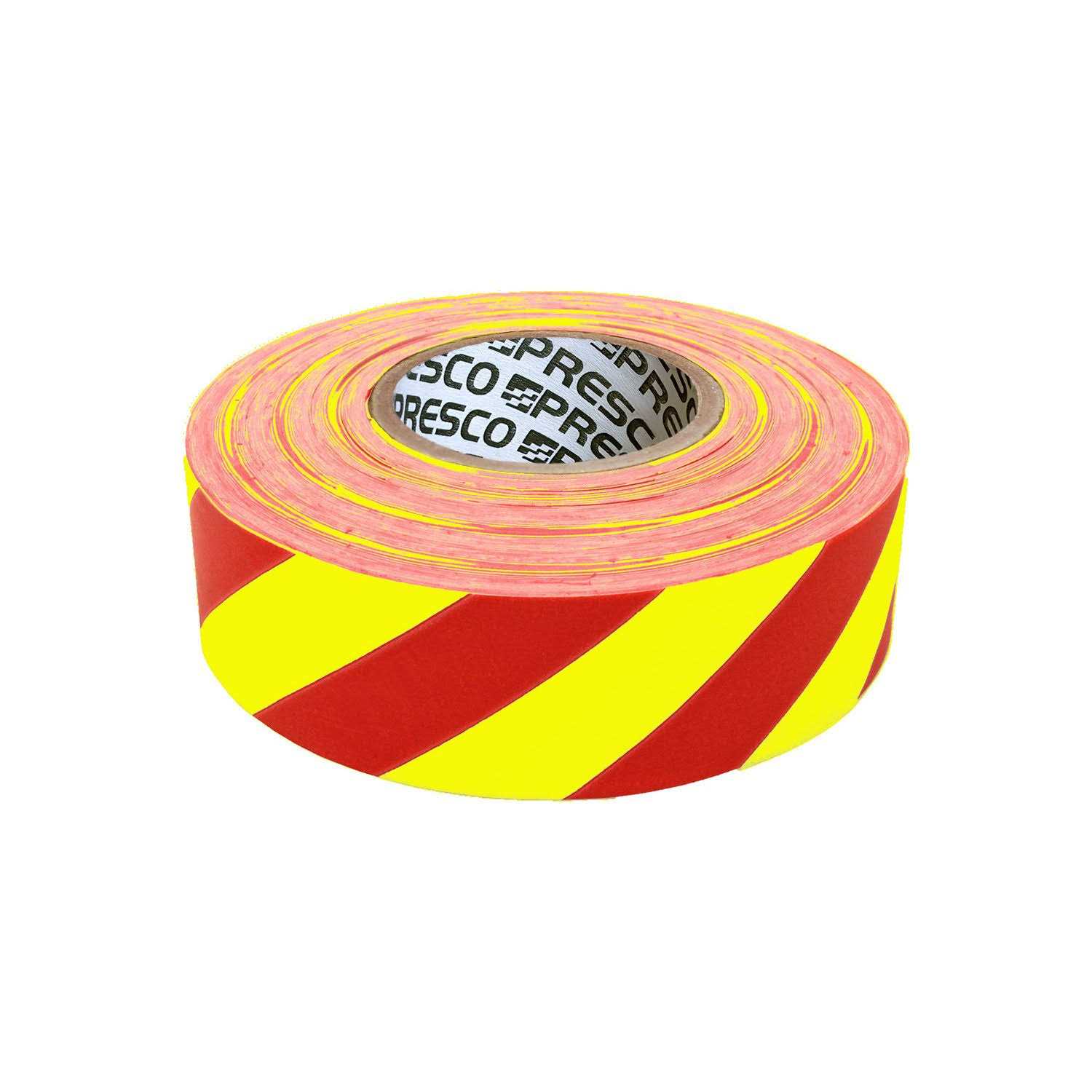 Presco Stripe Patterned Roll Flagging Tape is a non-adhesive, non-embossed tape used for surveying, trail marking and other industrial applications like construction, forestry, hardware, oil exploration, nursery, mining, and geophysics. Highly visible for maximum distinctiveness, Presco Stripe Patterned Roll Flagging tape is the most durable, longest-lasting outdoor flagging tape available in the marketplace. Easy identification and easy to use – just tie and untie. Presco Day/Night Stripe Patterned Roll Flagging Tape is formulated with an exclusive nighttime visibility silver ink combined with their economical roll flagging tape provides a cost-effective and disposable solution to your nighttime needs. In the dark, when a beam of light is directed at the stripes, light bounces back towards the source for enhanced nighttime visibility. Presco Stripe Patterned Roll Flagging tape is extruded PVC film and made in the USA. Since Presco controls the manufacturing process of the flagging tape, they are able to custom formulate the PVC film with added plasticizer packages which yield maximum physical properties including tensile strength, cold crack and UV stability. 13 standard color stripe patterns available with 2.0 mil thickness include Blue/Black, Green/Black, Orange/Black, Red/Black, Yellow/Black, White/Blue, White/Black, White/Green, White/Orange, White/Red, White/Yellow, Yellow/Red, and Yellow/Green. 3 neon PresGlo color stripe patterns available with 2.5 mil thickness include Neon Orange/Black, Neon Pink/Black, and Neon Pink/Light Pink. 2 day/night color stripe patterns available including Red/Silver with 2.0 mil thickness and Neon Orange/Silver with 2.5 mil thickness. Made in the U.S.
