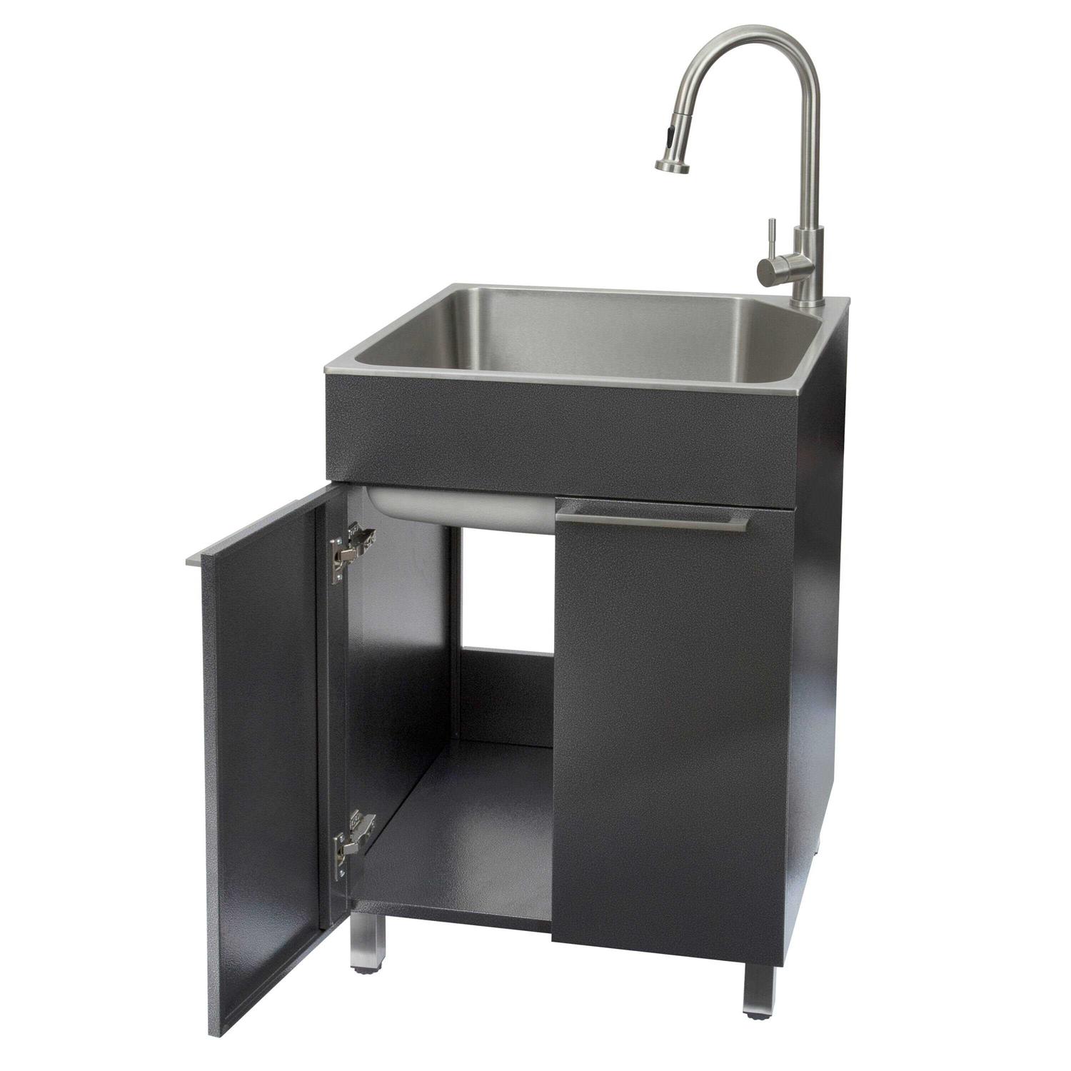 presenza All-in-One 24 in. x 21.2 in. x 34 in. Stainless Steel Drop-In Sink and Cabinet with Faucet in Gray 76776