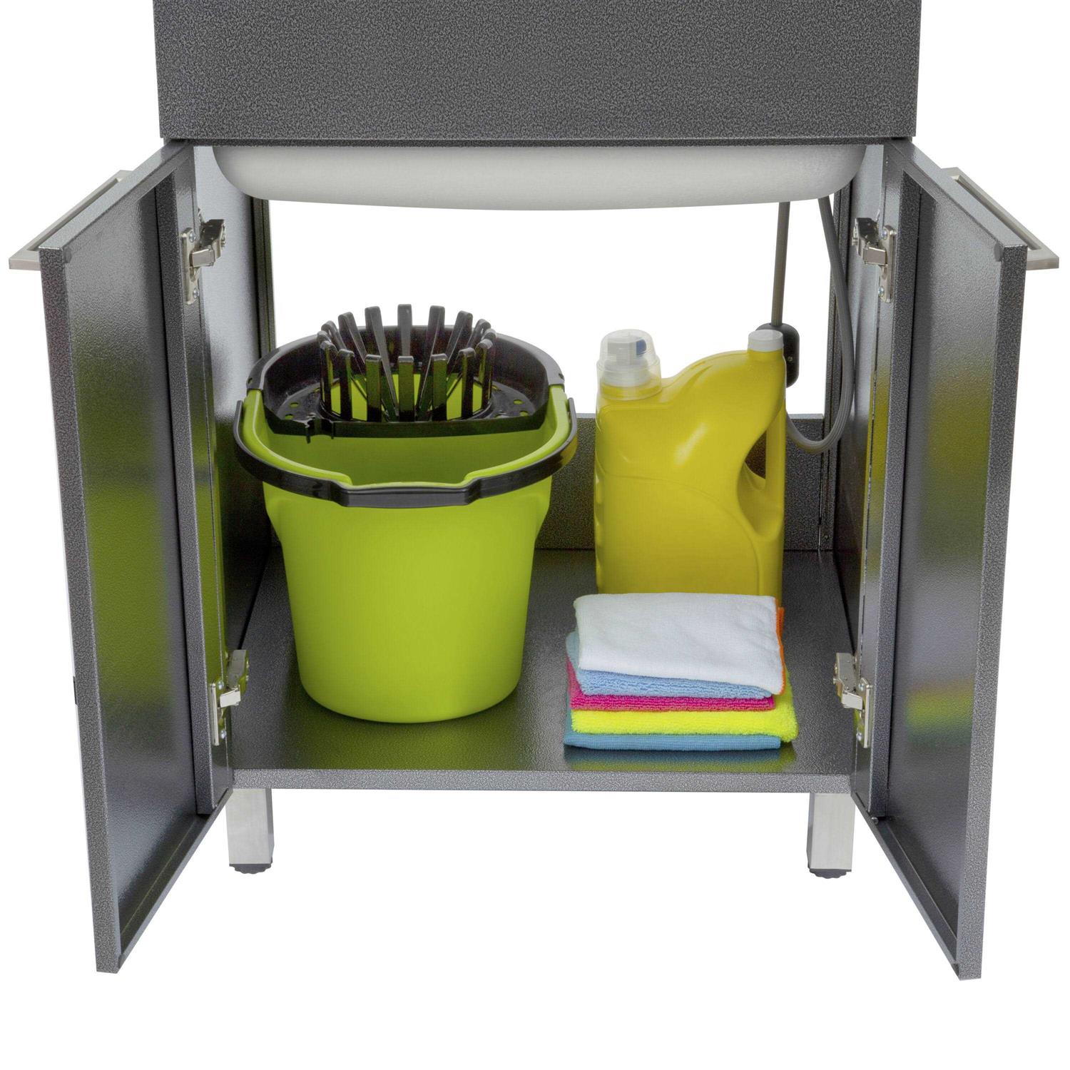 Presenza offers a line of stylish & innovative All-In-One Utility Cabinets. This utility sink and storage cabinet is designed to transform the style and function of your laundry room, workshop, or garage. The durable multipurpose stainless steel sink with a pull-down faucet can handle just about all domestic cleaning tasks and makes an excellent pet wash station. The pull-down faucet sprayer head is especially handy in filling pails or washing difficult-to-clean items. The spacious cabinet with soft-close doors offers plenty of space to store cleaning supplies and tools out of sight. With Presenza you get outstanding quality for good value.