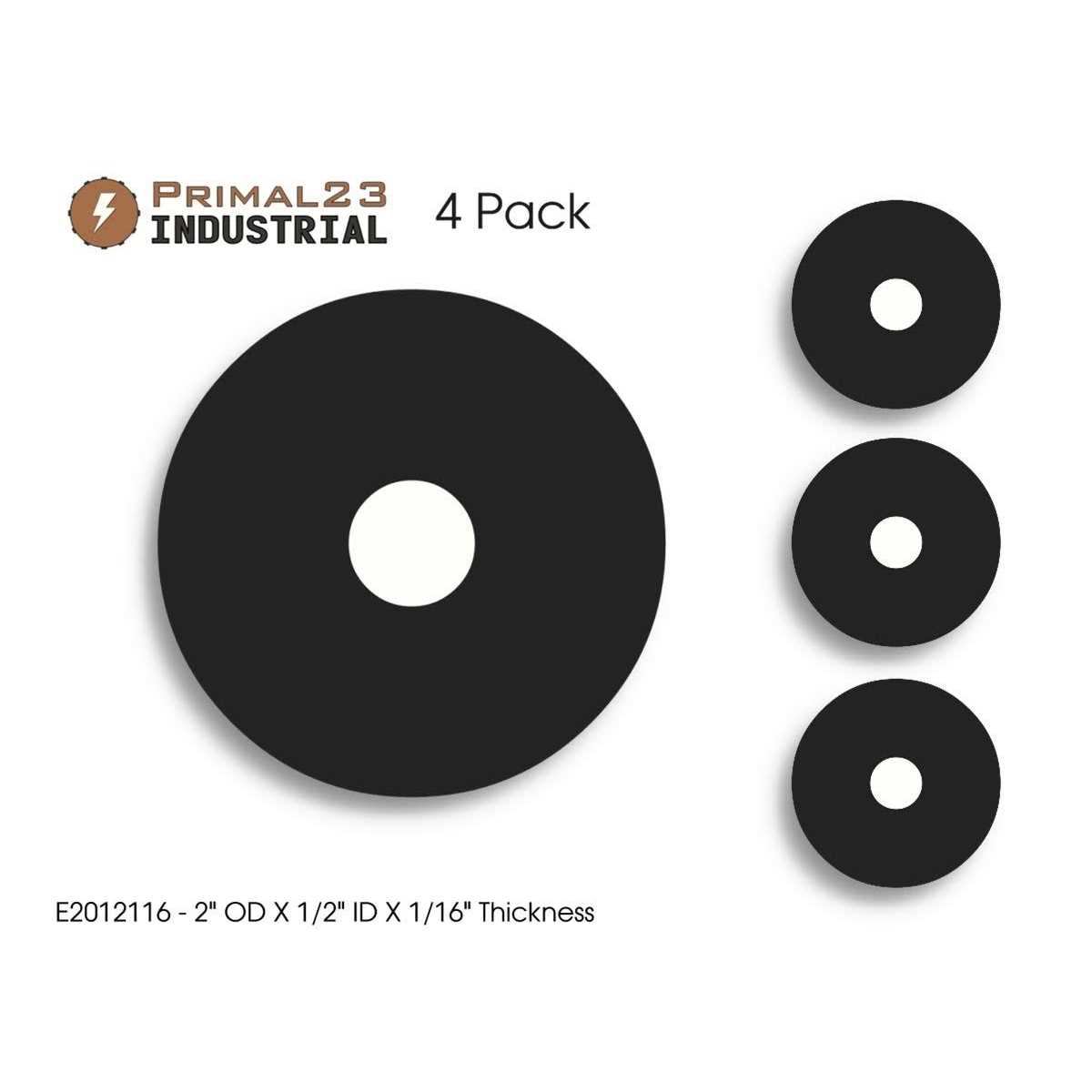 Primal23 Industrial (4) Rubber Fender Washers – 2 OD x 1/2 ID x 1/16 inch – Endeavor Series Neoprene Rubber Washers JJ272119