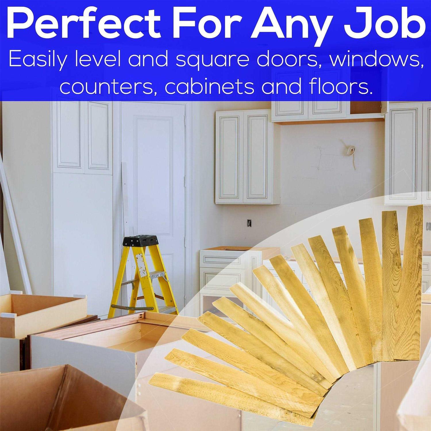 - EXTRA LONG TAPER TO ENSURE PERFECT FIT. Use these shims to make sure your cabinets and all other fixtures are plumb square each and every time.
