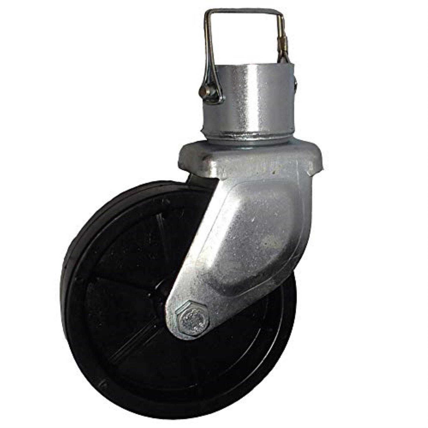 - 6 Inch Thermoplastic Wheel With Zinc Plated Bracket Fits Round Tube Jacks With 2 Inch O.D. Inner Tube.
