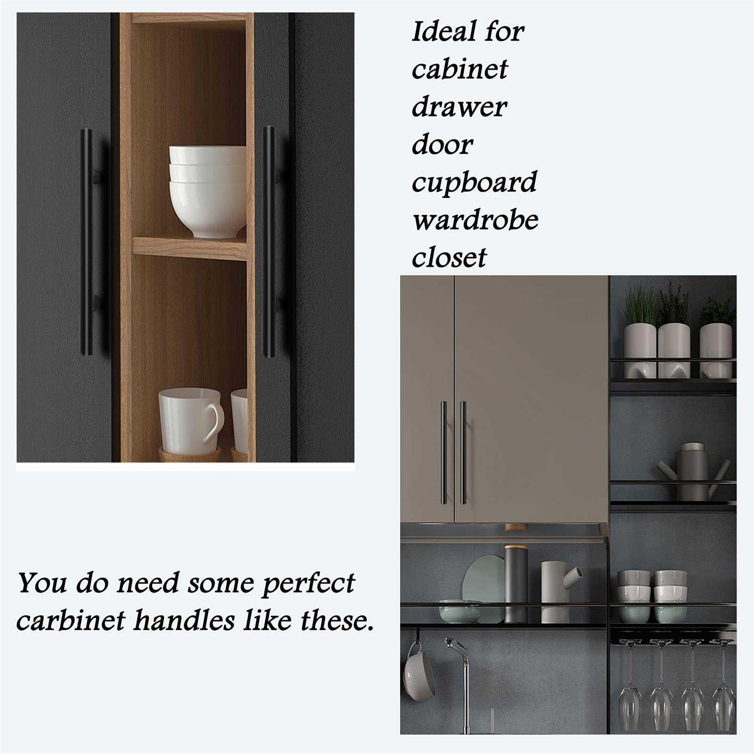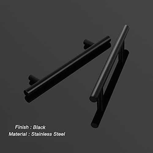 Probrico 30 Pack Black Stainless Steel Kitchen Cabinet Door Handles T Bar Drawer Pulls Knobs Diameter 1/2 inch Hole Centers:3-3/4inch-6inch Length
