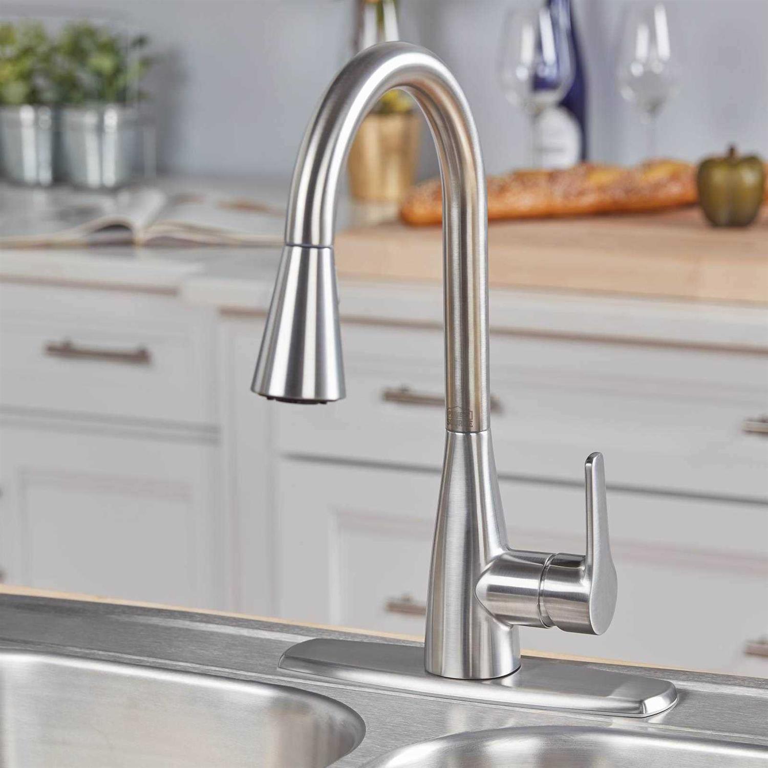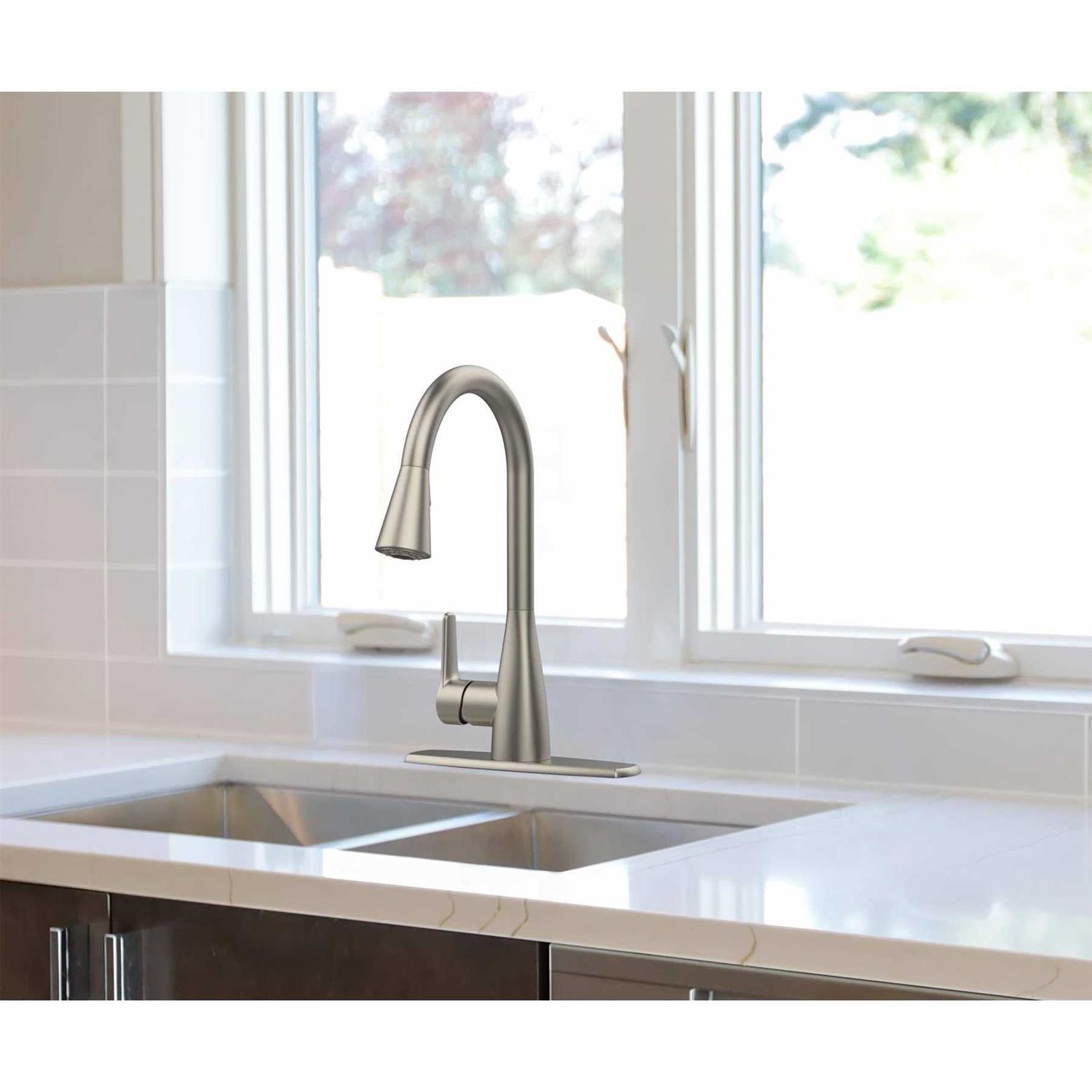 Project Source Ellesburg Stainless Steel 1-Handle Deck-Mount Pull-down Handle Kitchen Faucet 67726W-1008D2
