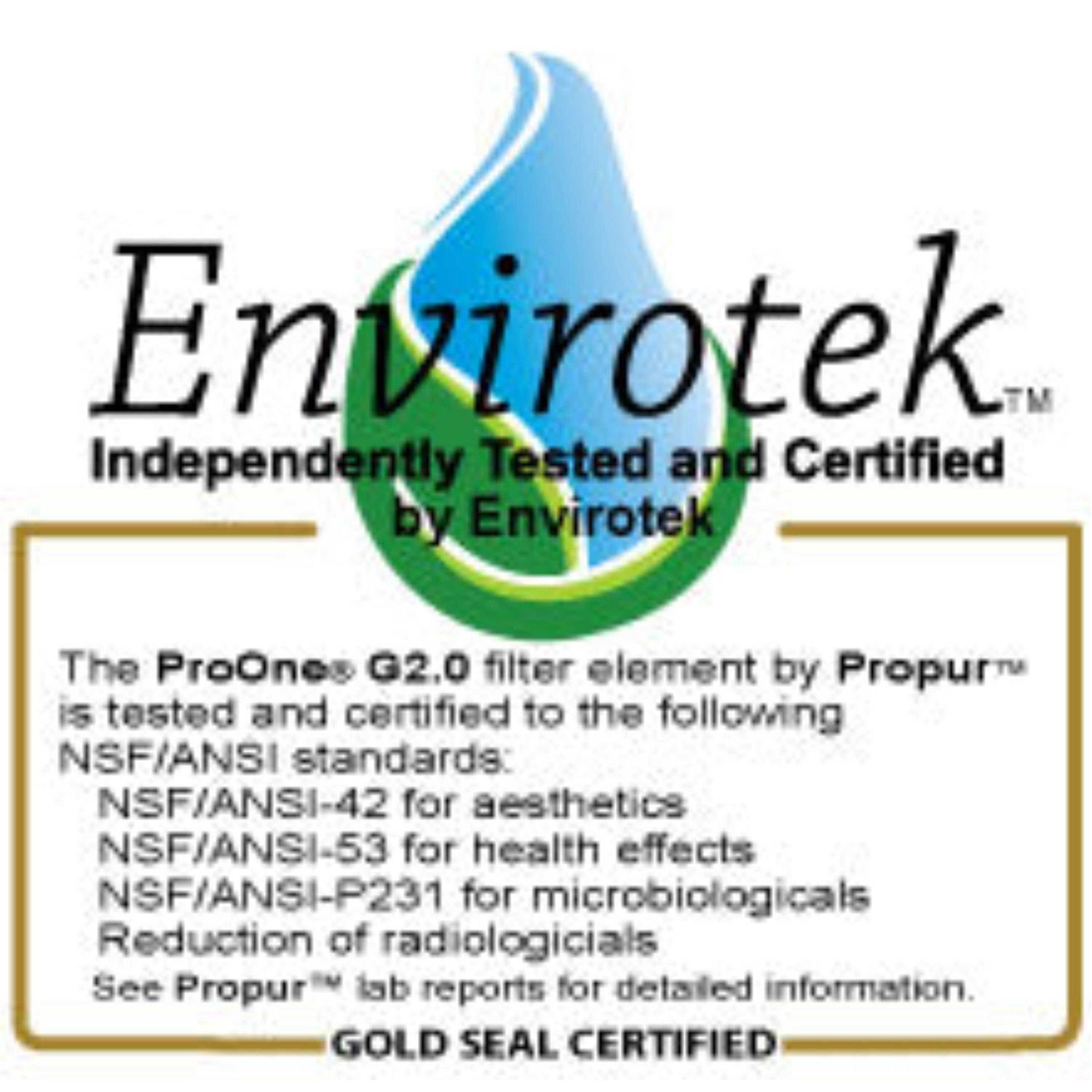 The ProOne G2.0 filter element is the result of years of research, design, development and innovation. The ProOne G2.0 2-stage filter consists of a ceramic composite silver impregnated matrix to help prevent bacteria growth and self-sterilizing with new AquaMetix advanced media for fluoride and other heavy metals together providing the most efficient water filter in ONE filter element. STAGE 1 The ProOne G2.0 water filter element is designed to remove pathogenic bacteria and cysts, in addition to having exceptional chemical and contaminant removal properties. The majority of pathogenic (disease causing) bacteria and cysts are larger than one micron. The ProOne G2.0 water filter element is controlled so that it will remove Cysts greater than 1 micron, and bacteria greater than 0.7 microns. STAGE 2 The ProOne G2.0 filter contains new AquaMetix advanced media designed to help reduce or remove heavy metals, arsenic, fluoride, bromine, and others found in drinking water.