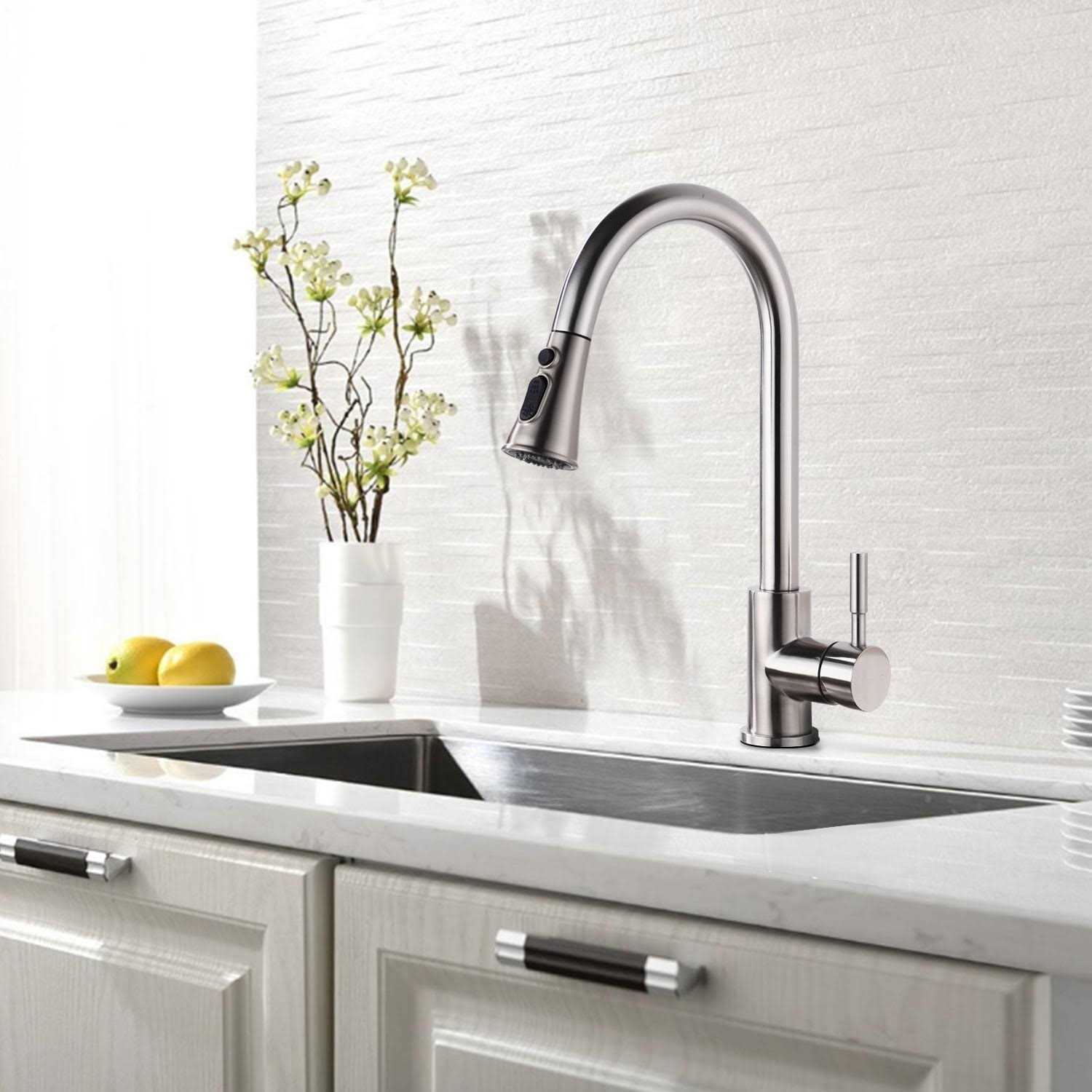 PROOX Commercial Single Handle Pull Down Sprayer Kitchen Sink Faucet – Matte Black D3411-MB