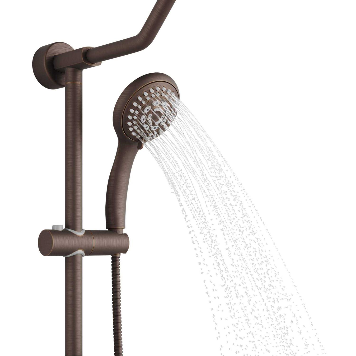 The integrated brass slide bar allows adjustable height control for the handshower and brass soap dish while providing a conveniently located diverter for switching functions. The soothing rain showerhead and multi-function handshower can be used separately or together for a multitude of spray combinations. Available in chrome, Brushed-Nickel or Oil-Rubbed bronze to match any decor. Typical install is less than 1 hour-even for the do it yourselfer. It simply connects to the water supply at your existing showerhead location and uses your existing hot/cold shower valve.