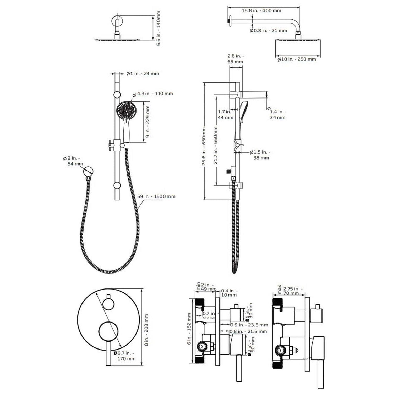 The Refuge Combo Shower System is a combo unit that comes in four finishes to match any style of bathroom. Equipped with a 10” rain showerhead, brass shower arm, adjustable slide bar, stainless steel handshower hose, multi-function handshower, and tru-temp pressure balance mixing valve with Diverter, this combo system completes any remodel adding beauty and style to your bathroom. The Refuge Combo Shower System is the perfect solution for a modern bathroom remodel and is designed to enhance your shower experience.