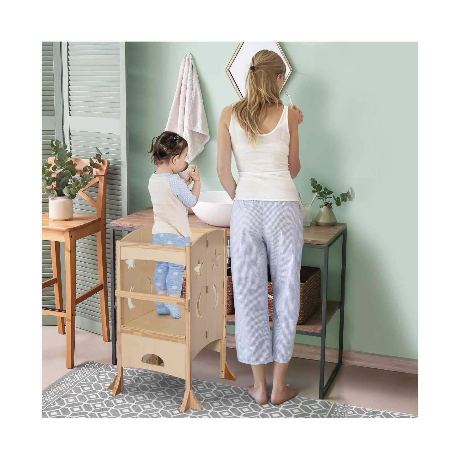 Qaba Wooden Kitchen Step Stool for Kids Foldable Toddler Tower