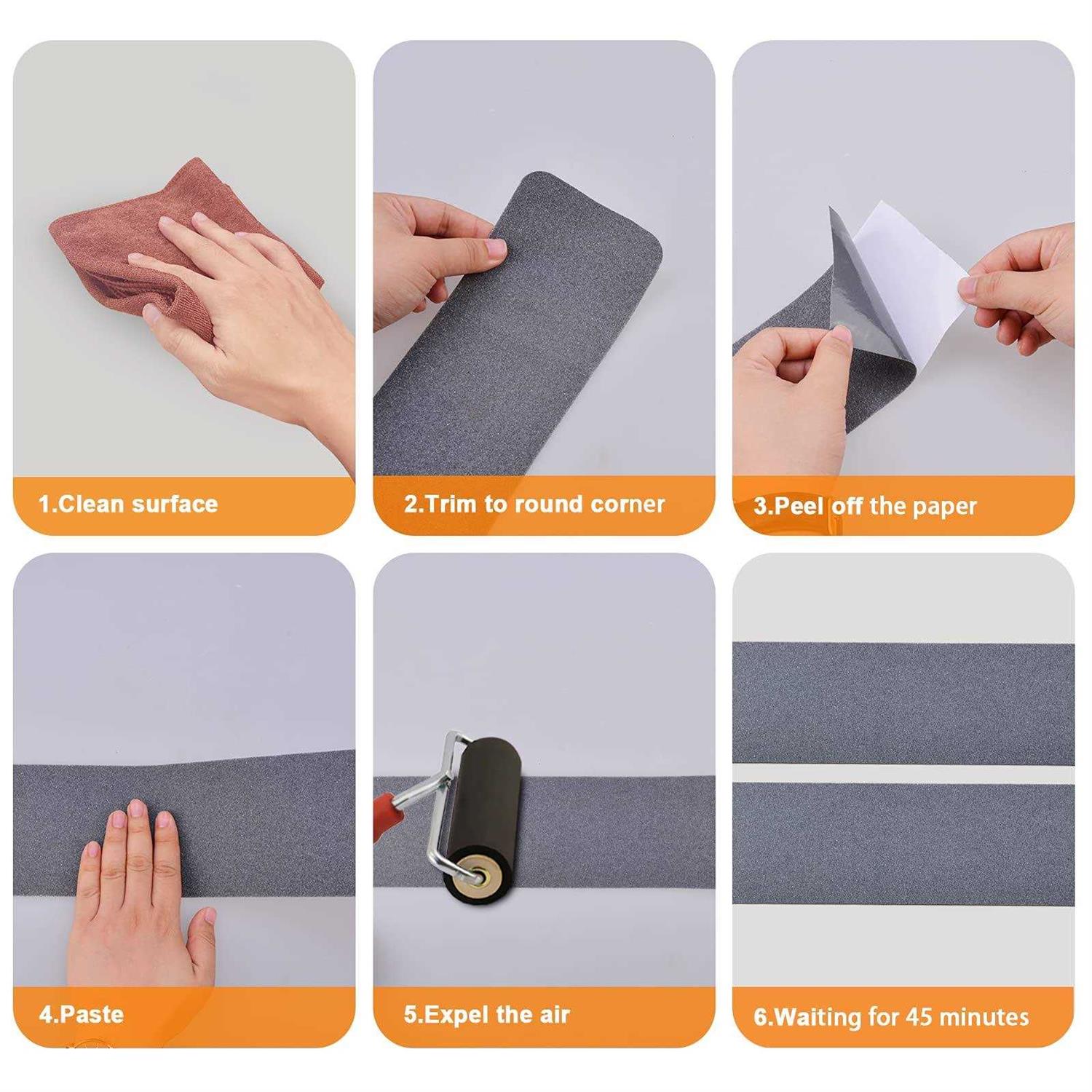 Non slip tape: This measures 4 inch by 60 feet heavy duty outdoor stair treads non-slip, Suitable for most indoor/outdoor stairs. You can arbitrarily cut out the size you want. Our Stair Grip Tapes feature a thick, waterproof and very strong glue that provides long-lasting grip and performance. Safety tape for steps: Our high traction outdoor anti slip tape made of thick PVC base layer with 80-grit aluminum oxide compound. Waterproof and it can effectively increase the friction to prevents slipping and reduces the risk of accidents on slippery wood, marble and tile stairs to keep your family, kids and pets safe. Works on any weather: Our anti slip tape for stairs was specifically designed to withstand heavy foot traffic and any weather conditions, including rains, snow, wind. outdoor stair treads non-slip creates an exceptional long term grip on all smooth surfaces for many years. Easy to install: Clean the surface of the stairs and make it dry. Then peel off theanti skid tape for steps outdoor sticker backing to expose the adhesive side, and then apply it steady starting at one end of the step to the other. Wide applications: Our non skid tape for stairs Perfect for indoor and outdoor use such as wood floors, tiles, terraces, ladders, concrete, metal, plastic, tile, laminate, mats, carpets, shoe grips, skateboard grip, ramps, boats, scooters showers and bathtubs. anti skid tape
