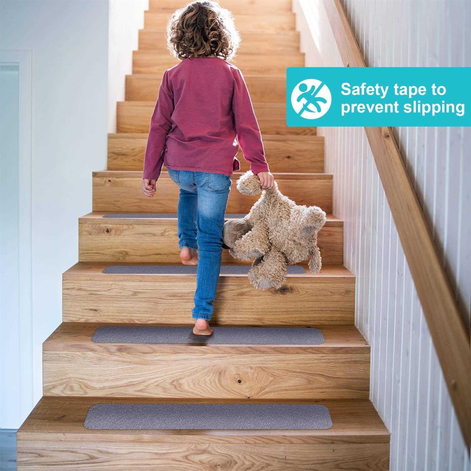 Non slip tape: This measures 4 inch by 16.4 feet heavy duty outdoor stair treads non-slip, Suitable for most indoor/outdoor stairs. You can arbitrarily cut out the size you want. Our Stair Grip Tapes feature a thick, waterproof and very strong glue that provides long-lasting grip and performance. Safety tape for steps: Our high traction outdoor anti slip tape made of thick PVC base layer with 80-grit aluminum oxide compound. Waterproof and it can effectively increase the friction to prevents slipping and reduces the risk of accidents on slippery wood, marble and tile stairs to keep your family, kids and pets safe. Works on any weather: Our anti slip tape for stairs was specifically designed to withstand heavy foot traffic and any weather conditions, including rains, snow, wind. outdoor stair treads non-slip creates an exceptional long term grip on all smooth surfaces for many years. Easy to install: Clean the surface of the stairs and make it dry. Then peel off theanti skid tape for steps outdoor sticker backing to expose the adhesive side, and then apply it steady starting at one end of the step to the other. Wide applications: Our non skid tape for stairs Perfect for indoor and outdoor use such as wood floors, tiles, terraces, ladders, concrete, metal, plastic, tile, laminate, mats, carpets, shoe grips, skateboard grip, ramps, boats, scooters showers and bathtubs. anti skid tape