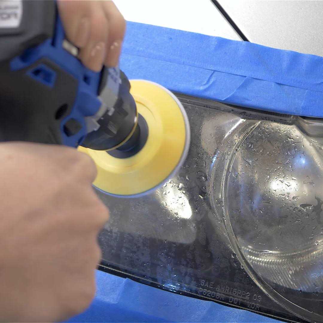 Headlight Restoration Kits by Rain-X. Details:The Rain-X Premium headlight restoration kit provide professional results at a fraction of the cost. Using a drill (not included) provides consistent, controlled results and eliminates the variability of hand sanding. The wet sanding process is easy and gentle resulting in less surface friction and less risk for damage. The sealant chemistry is reactive, curing and bonding together on the lens surface to create a solid protective barrier, extending the life of the restoration. Finishing with the sealant wipe further eliminates any remaining haze, boosts clarity, and protects headlights. The sealant wipe formula is water-based with no offensive smells and is not bad for your lungs.
