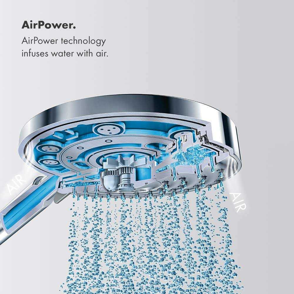 The Hansgrohe Raindance Select Handshower will become the highlight of your shower. With its chrome finish and its multiple Rain modes, it will be a unique experience each time it is used. Using its AIR-injection technology, it will save you money and water as well. Oversized 6 in. spray face.AIR-injection technology.Rain AIR, mix and Caresse AIR spray modes.86 no-clog spray channels.