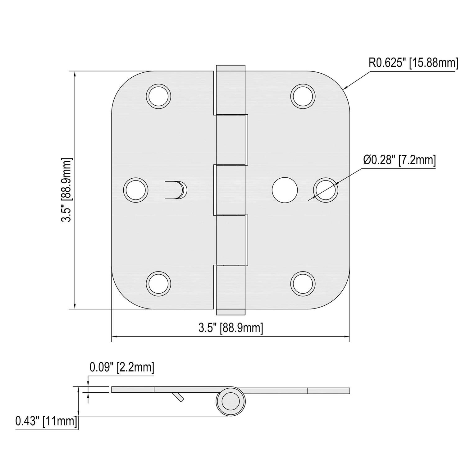 Security tab that prevents door from being removed when closed. Removable pin, full mortise. All mounting hardware is included for easy installation. Beautiful finish to coordinate with your existing door hardware.