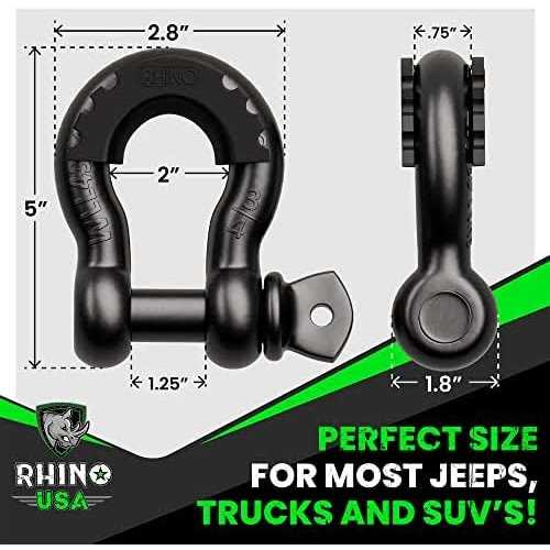 Rhino USA D Ring Shackle (2 Pack) 41,850lb Break Strength