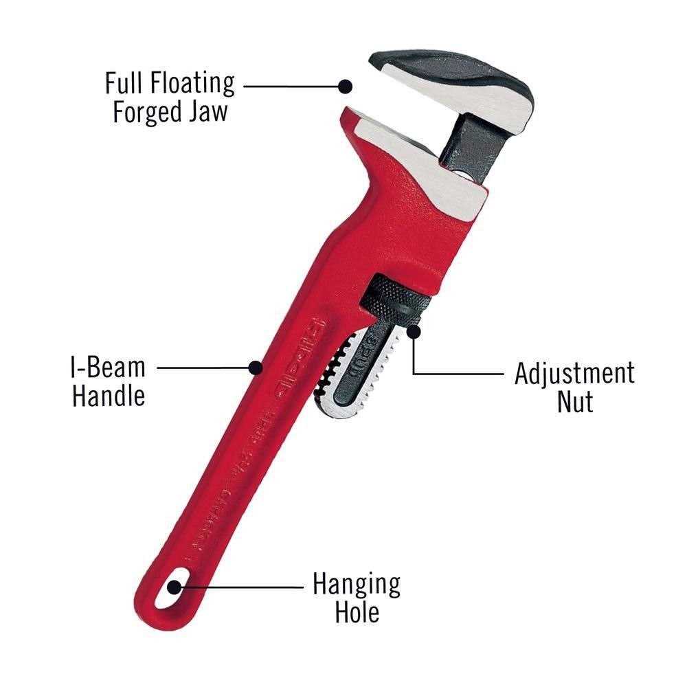 The RIDGID 12-Inch HD Spud Wrench lets you remove or tighten various fasteners. This Ridgid spud wrench’s jaw differs from a pipe wrench in that it has no teeth, which makes it ideal for rectangular or square fasteners, as well as pieces with delicate finishes. It can work on pipes as wide as 2-5/8 inches and as narrow as 3/8 inch for extra versatility. The 12-inch wrench’s long handle provides outstanding leverage for easy turning of tightly stuck fasteners. This wrench’s cast iron construction makes it very durable to handle the most heavy-duty working conditions. It has a hole at the end of the handle so you can store it on pegs or belt hooks.