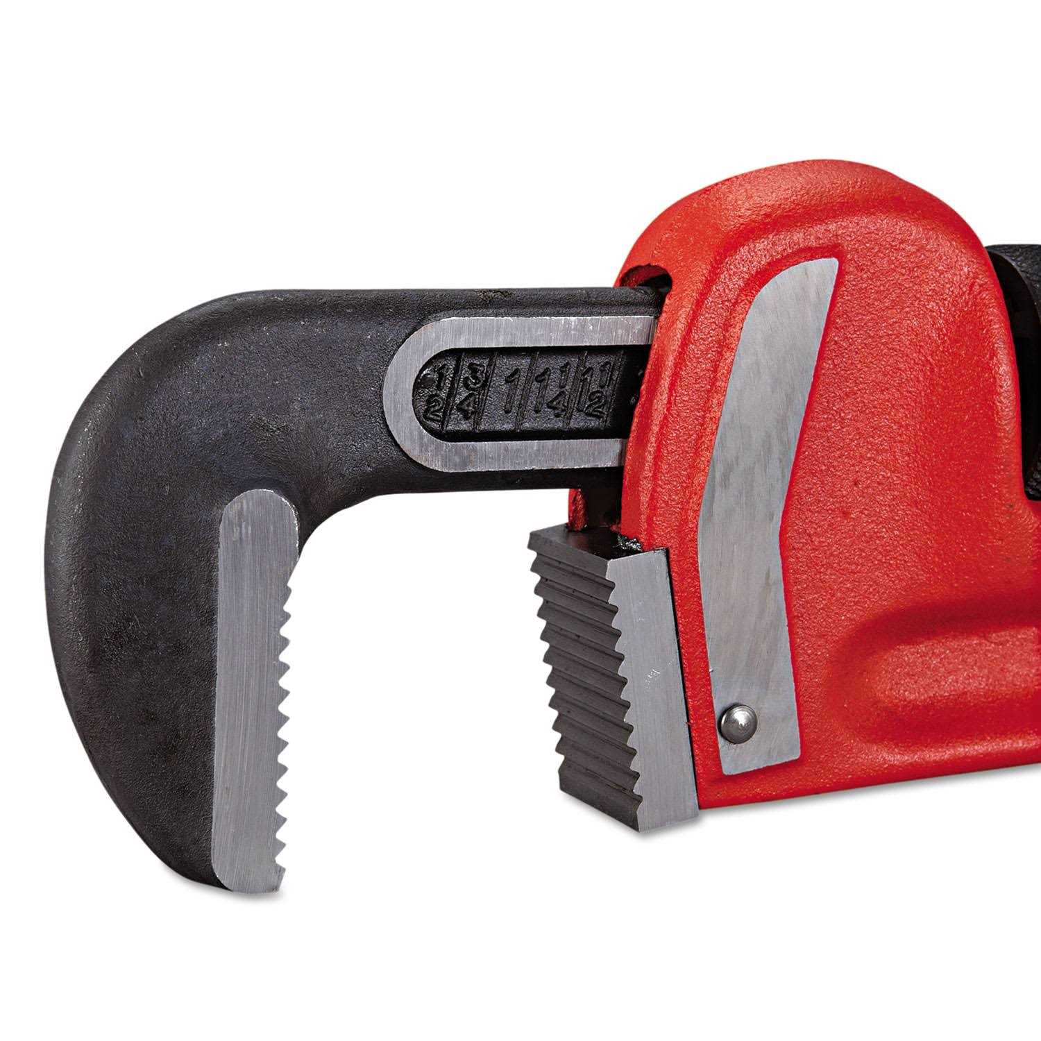 Ridgid 31035 36″ Straight Pipe Wrench. 5″ Pipe Capacity. 36″ Straight Pipe Wrench. 5″ Pipe Capacity. RIDGID Pipe and Tubing Tools include the legendary RIDGID pipe wrench, the most complete and premier line of threading and roll grooving equipment, best-in-class pipe and tubing cutters, bending and forming tools, and a variety of other pipe-working tools and accessories. RIDGID Pipe and Tubing Tools perform the same every time, job after job, under the toughest conditions. Pipe wrench features sturdy, cast-iron housing and I-beam handle with full floating forged hook jaw, featuring self-cleaning threads with replaceable hook and heel jaws. Heavy-duty pipe wrenches comply with federal specifications GGG-W65IE, Type ll, Class A.