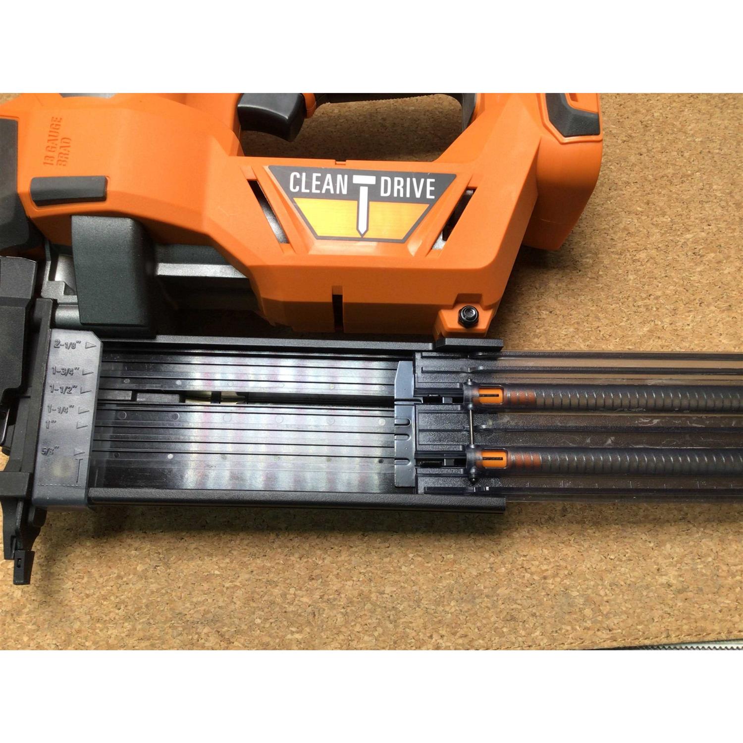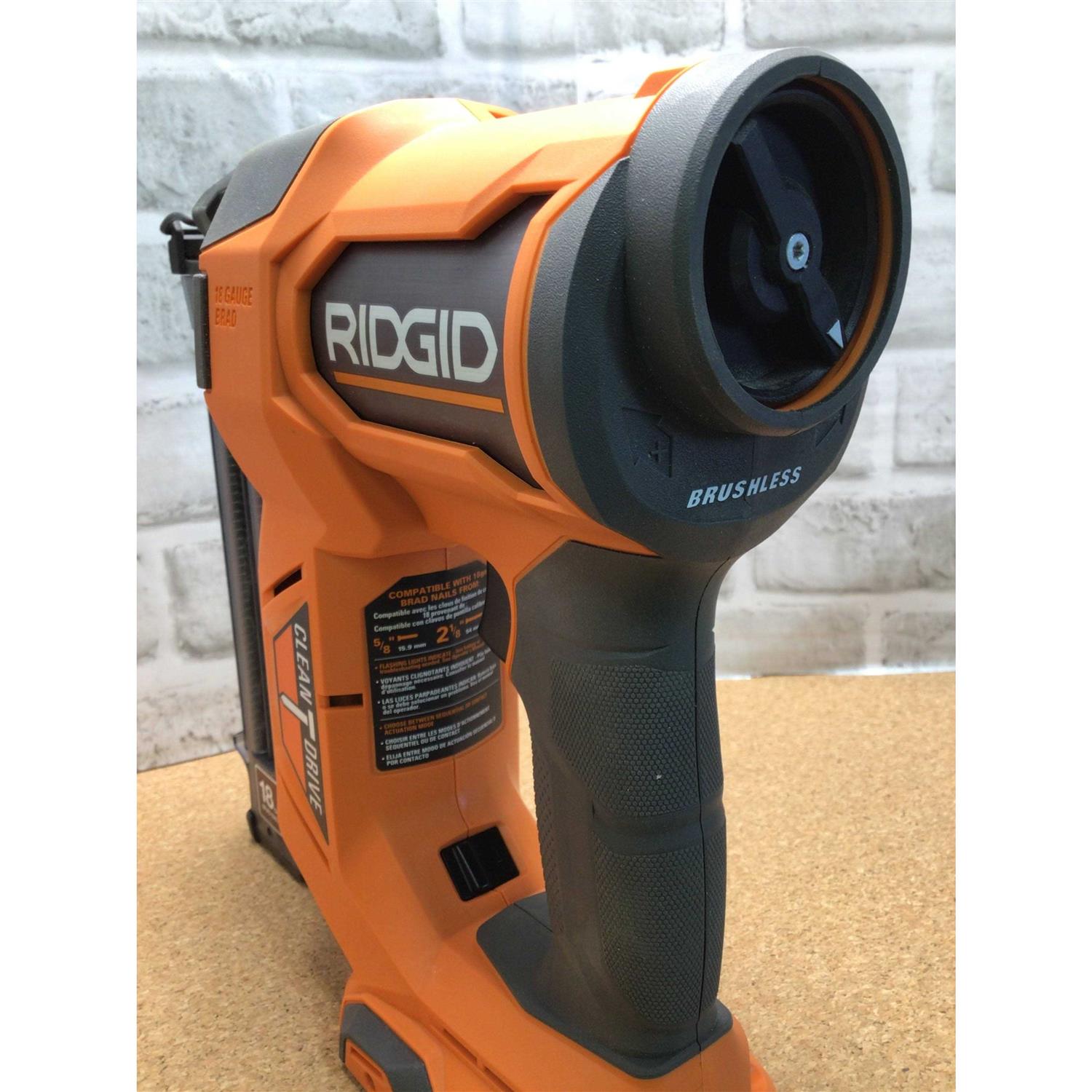 18V Brushless Brad Nailer – RIDGID introduces the 18V Brushless Cordless 18-Gauge 2-1/8 in. Brad Nailer (Tool Only) with CLEAN DRIVE Technology. This 18V Cordless Brad Nailer is more compact and lighter weight compared to the previous model (R09890B). Featuring CLEAN DRIVE Technology, this brad nailer boasts 17X more consecutive perfect drives than the competition. CLEAN DRIVE Technology means you can spend less time fixing and more time working. This brad nailer has a small nose for visibility, drives flush at all angles, and no driver blade slip. Paired with any RIDGID 18V battery, you get all the power of a pneumatic nailer in a cordless tool. With no compressor, no hose, and no gas cartridge, this cordless brad nailer enables faster set-up and easier maneuvering on the job site, driving 18-gauge nails from 5/8 in. to 2-1/8 in. Best of all, this tool is 100% compatible with all RIDGID 18V batteries, The 18V Brushless Cordless 18-Gauge 2-1/8 in. Brad Nailer includes 2 non-marring pads, and operator’s manual. Ba