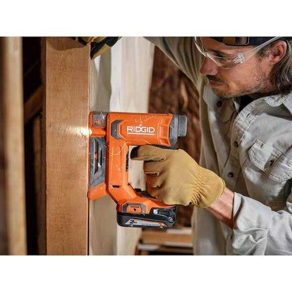 This 18V Cordless Brad Nailer is more compact and lighter weight compared to the previous model (R09890B). Featuring CLEAN DRIVE Technology, this brad nailer boasts 17X more consecutive perfect drives than the competition. CLEAN DRIVE Technology means you can spend less time fixing and more time working. This brad nailer has a small nose for visibility, drives flush at all angles, and no driver blade slip. Great for installing insulation, screening, and upholstery, this crown stapler uses heavy duty 3/8 in. width staples to tackle a wide variety of applications. Capable of driving up to 6,800 staples per charge using a 4.0 Ah Lithium-Ion Battery (not included), the RIDGID 18V Cordless 3/8 in. Crown Stapler delivers all day runtime. As always, this RIDGID 18V Kit is 100% compatible with all RIDGID 18V batteries. Best of all, this kit is backed by the Industry’s Only Lifetime Service Agreement, simply register within 90 days of purchase for FREE Parts, Free Service, For LIFE. Brad Nailer with 2 non-marring pads, a Crown Stapler, Screen/Wire Attachment, Belt Hook with Screw, and Operator’s Manual. Battery and charger sold separately.