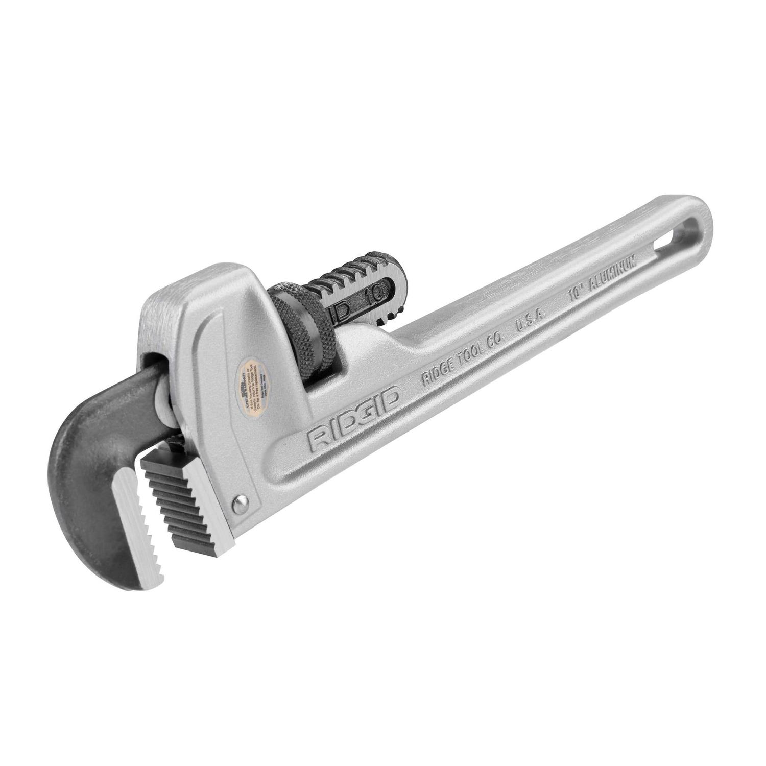 1.5″ Pipe Capacity. 10″ Aluminum Straight Pipe Wrench. 1.5″ Pipe Capacity. RIDGID Pipe and Tubing Tools include the legendary RIDGID pipe wrench, the most complete and premier line of threading and roll grooving equipment, best-in-class pipe and tubing cutters, bending and forming tools, and a variety of other pipe-working tools and accessories. RIDGID Pipe and Tubing Tools perform the same every time, job after job, under the toughest conditions. Straight pipe wrench features professional strength in lightweight aluminum. Offers the same durability and ease-of-use found in all RIDGID heavy-duty wrenches.