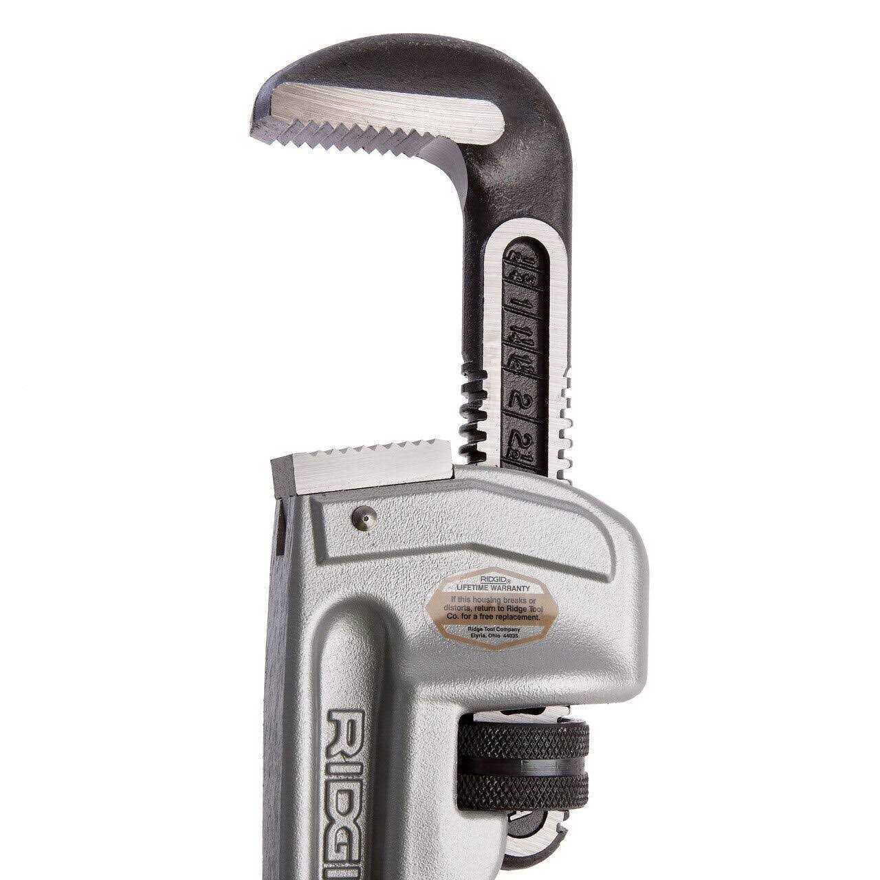 - 450mm/18″ Aluminium Straight Pipe Wrench offers the same durability and ease of use found in all ridgid heavy duty wrenches.