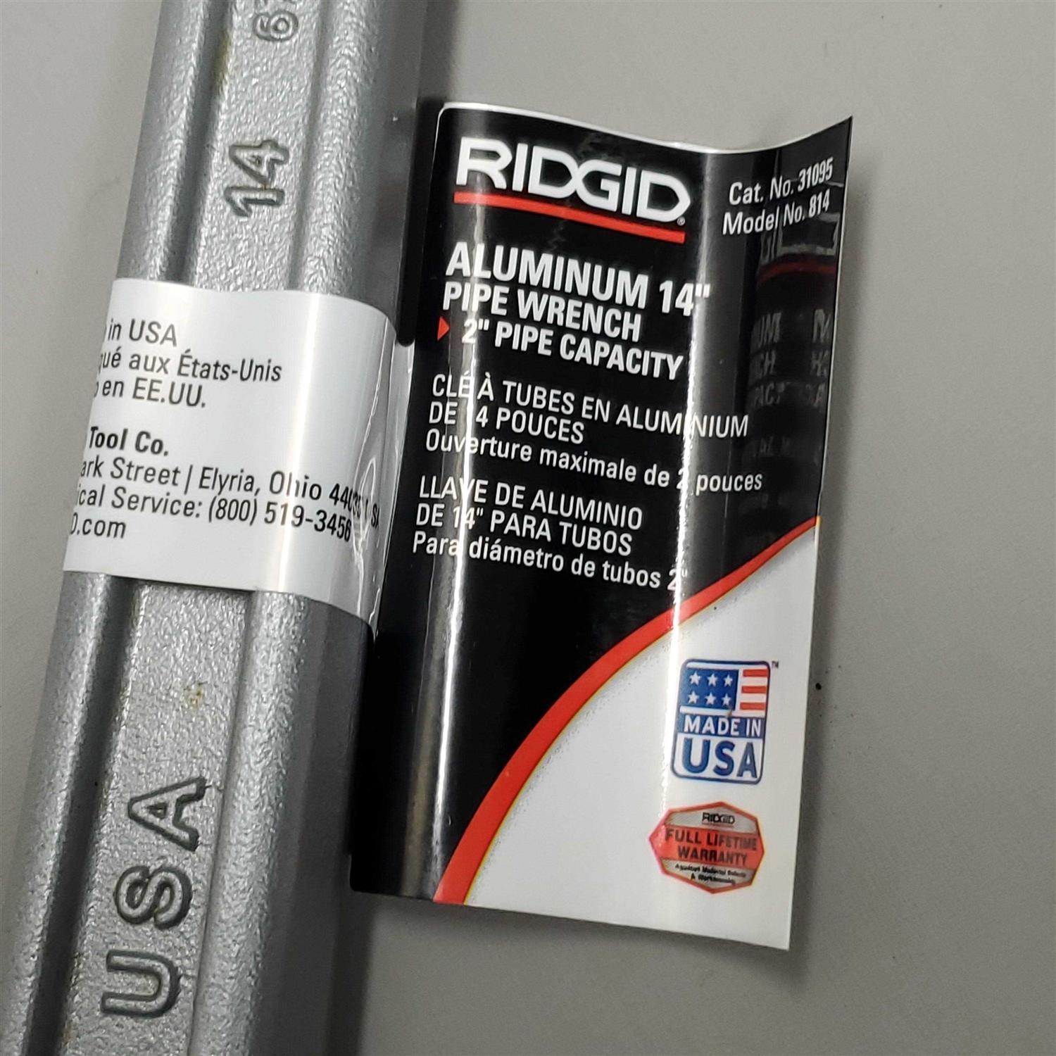 RIDGID 31095 14″ Aluminum Straight Pipe Wrench. 2″ Pipe Capacity. 14″ Aluminum Straight Pipe Wrench. RIDGID Pipe and Tubing Tools include the legendary RIDGID pipe wrench, the most complete and premier line of threading and roll grooving equipment, best-in-class pipe and tubing cutters, bending and forming tools, and a variety of other pipe-working tools and accessories. Straight pipe wrench features professional strength in lightweight aluminum. Offers the same durability and ease-of-use found in all RIDGID heavy-duty wrenches.