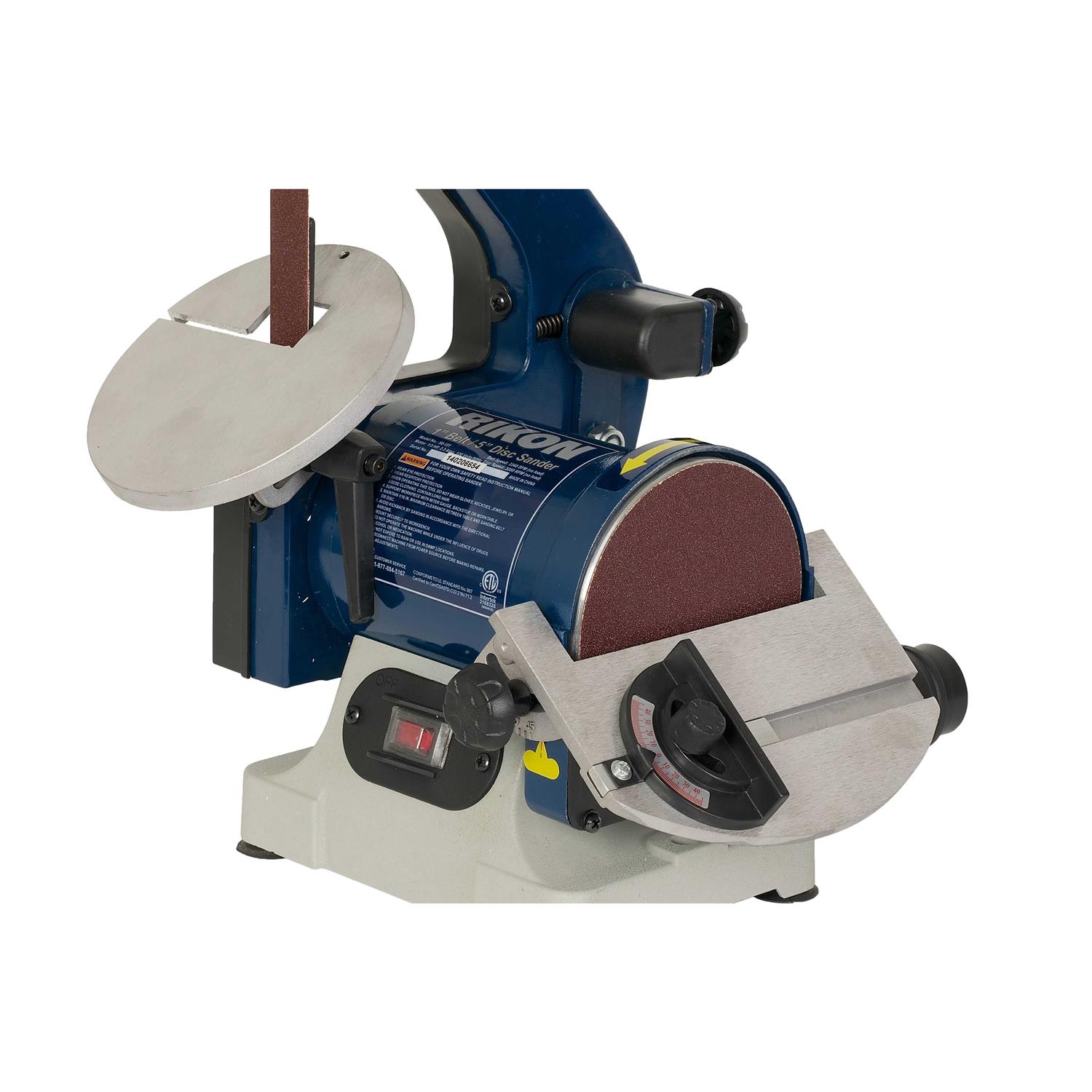 The Rikon 1″ X 30″ belt with 5″ disc sander gives you power, precision and versatility. It’s a reliable sander with the power to do a wide variety of essential jobs in the shop. It’s also got a pair of sturdy and accurate tables that let you sharpen, bevel and miter with precision. Your belt changes don’t take all day, and the dual dust ports keep their discharge out of your way. This combination sander gives you high quality and an excellent value. Dependable durable finish. The disc table is cast aluminum and the sander’s base is solid steel with a cast aluminum frame, for a heavy stable base.