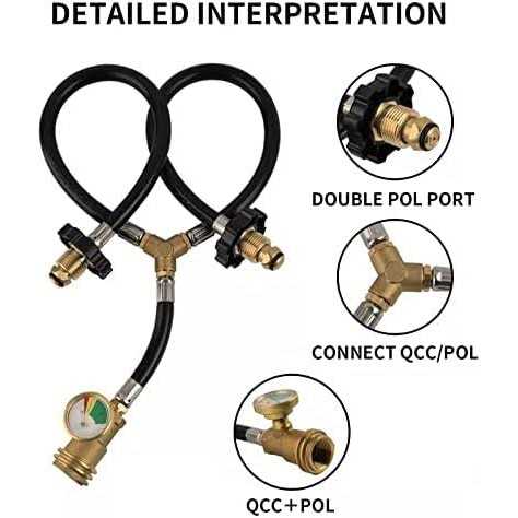 Roastove Universal Two Way POL&QCC Y Splitter Hose with Gauge to Connects 5-100lbs Propane Tank for Grill, Heater, Fire Pit, Fireplaces