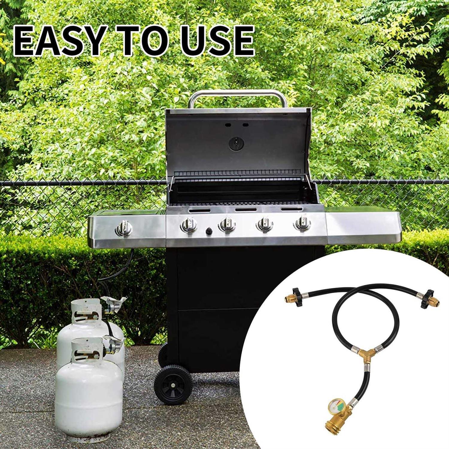 Roastove Universal Two Way Pol&qcc Y Splitter Hose with Gauge to Connects 5-100lbs Propane Tank for Grill