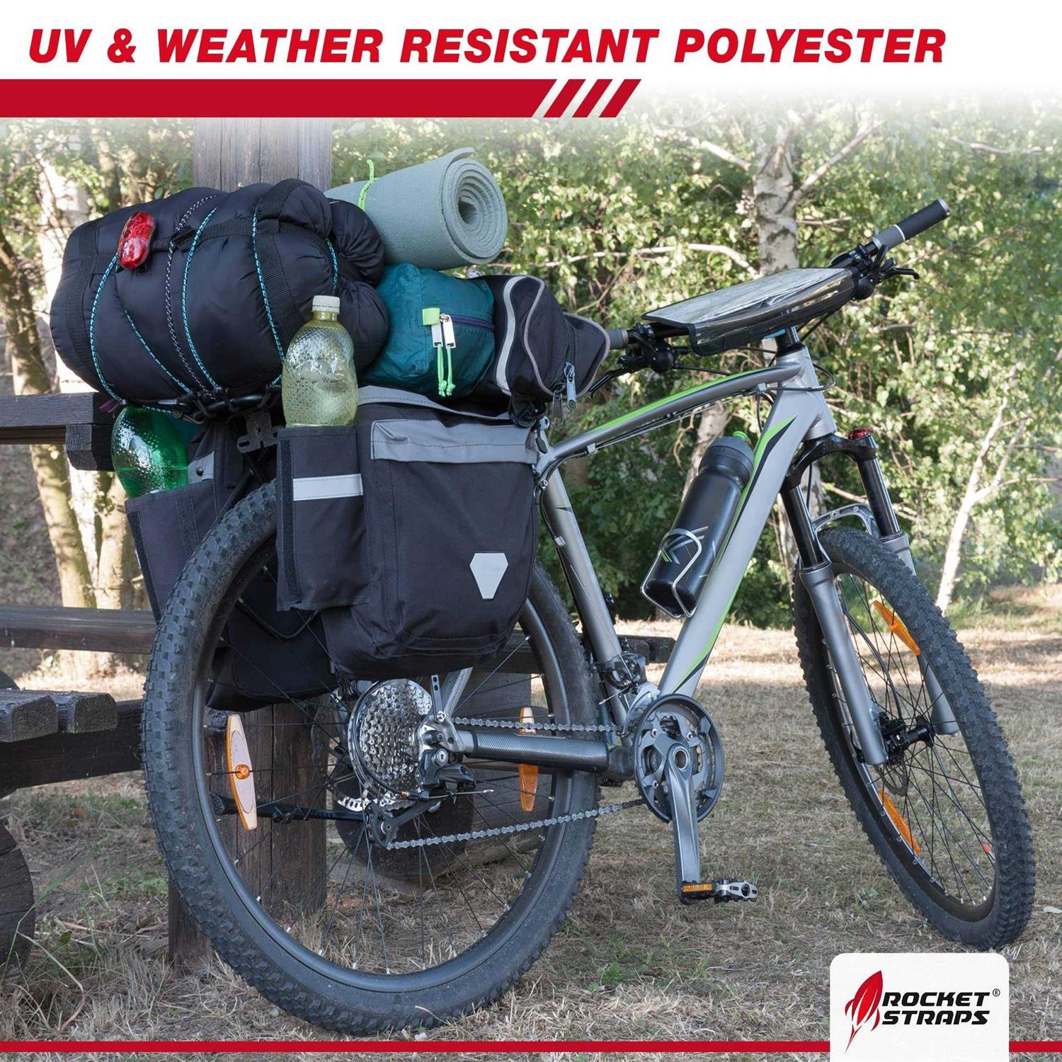 Please read our proper care for instructions on how to care for your Rocket Straps purchase. 1.) Durability polyethylene terephthalate: Our (PET) is a strong and durable material that is resistant to wear and tear, making it ideal for use in bungee cords. When combined with high grade rubber, these bungee cords are able to withstand even the toughest conditions and continue to perform at their best. 2.) Elasticity: The high grade rubber used in Rocket Straps bungee cords provides excellent elasticity, allowing them to stretch and contract as needed while maintaining their shape. This makes them ideal for a wide range of fastening tasks. 3.) Flexibility: This rubber type retains its flexibility even in challenging conditions, such as varying temperatures or exposure to chemicals. It remains pliable over a wide range of environmental conditions. 4.) Safety: The triple braided design of these bungee cords provides an extra level of security and holding power, helping to prevent accidents and keep your items secure. 5.) J-Hooks Strength: Rocket Straps J hooks are stronger and more durable than single J hooks, as they have two points of attachment rather than just one. This makes them less likely to bend or break under load, and better able to hold up to the stresses of securing items. 6.) Overall performance: The combination of (PET), high grade rubber and our double J-hooks Rocket Straps bungee cords makes for a strong, durable, and reliable product that is ideal for a wide range of fastening tasks. 7.) Versatility: Due to its combination of properties, PET rubber finds use in various sectors, including automotive, construction, electrical, and consumer goods manufacturing. 8.) Rocket Straps bungee options: But it’s not just the quality of our bungee cords that sets us apart from the competition. Visit our Amazon store to view our other bungee sets. 9.)