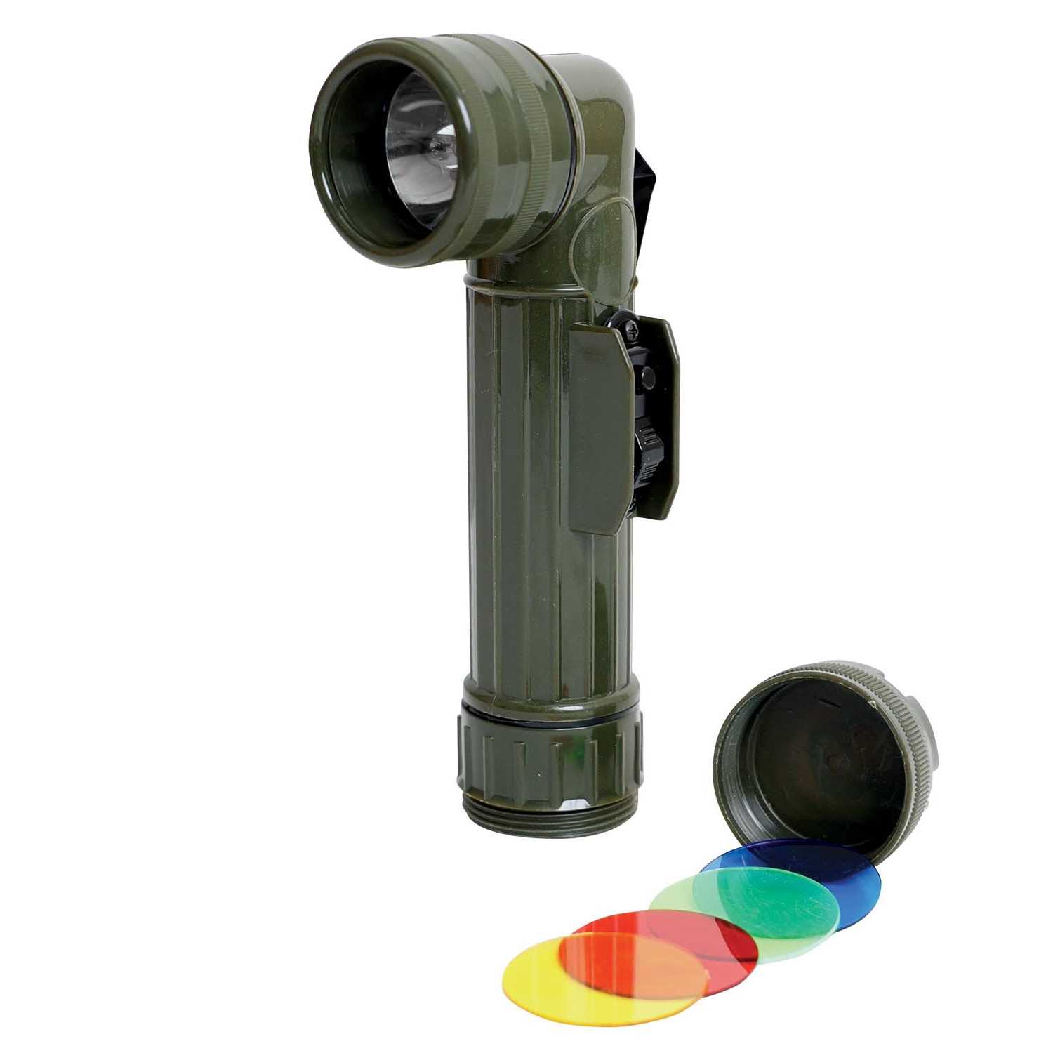 - Military angle flashlight features a multi-mode switch with a signal button to use for morse code
