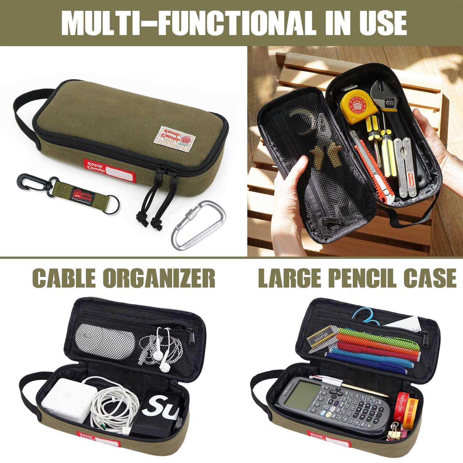 Rough Enough Canvas Small Tool Bag Pouch Large Pencil Case EDC Organizer Storage for School Art Supplies with Zipper for Men Boys
