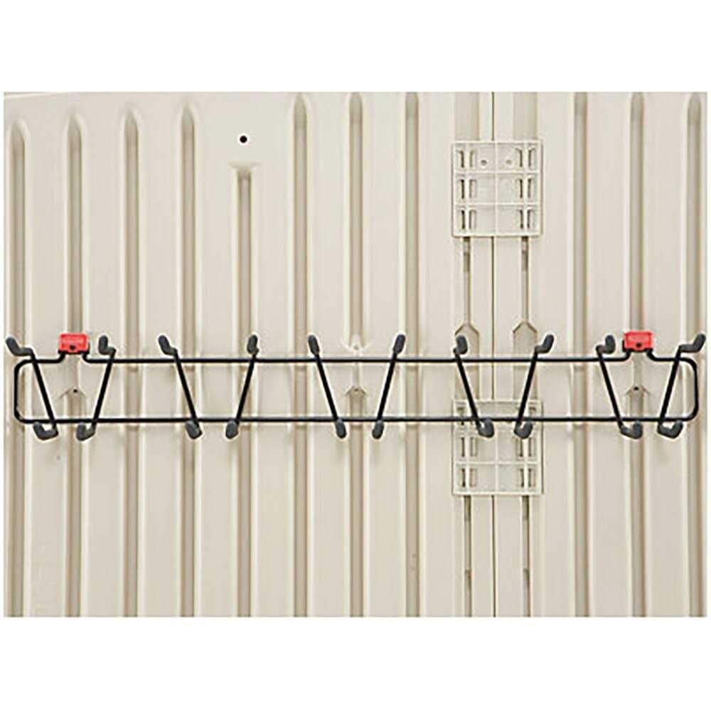 Organize the interior of your Rubbermaid shed with the Tool and Sports Rack. This rack is perfect for storing long-handled tools and sports equipment on the back wall of your shed clearing up floor space for more storage. This rack can hold up to 50 pounds of equipment and is designed for easy installation.