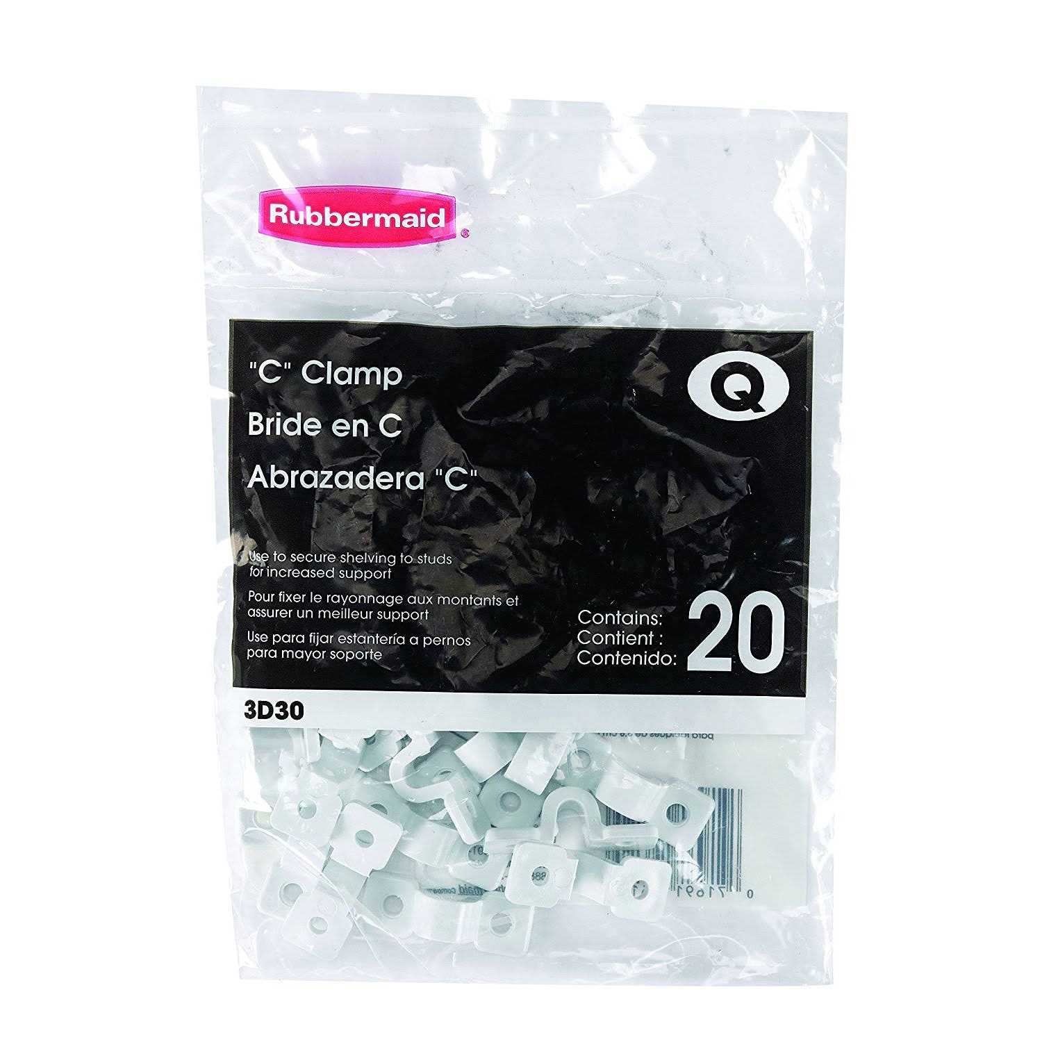 - Rubbermaid C Clamps add support to wire shelves when installing with an open end or when installing directly into studs.